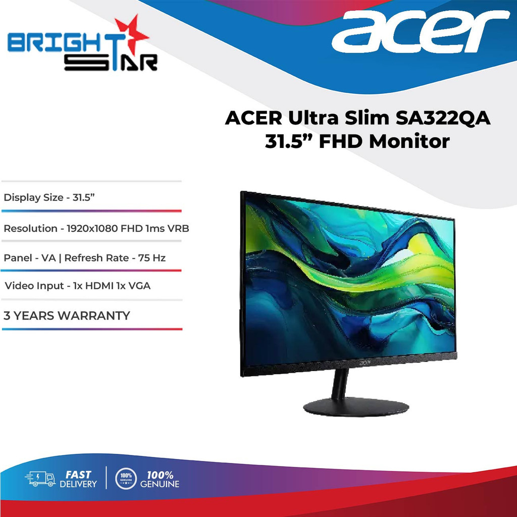 ACER Ultra Slim SA322QA Monitor - 31.5"/IPS/FHD/75Hz/1ms VRB/HDMI,VGA/3Y