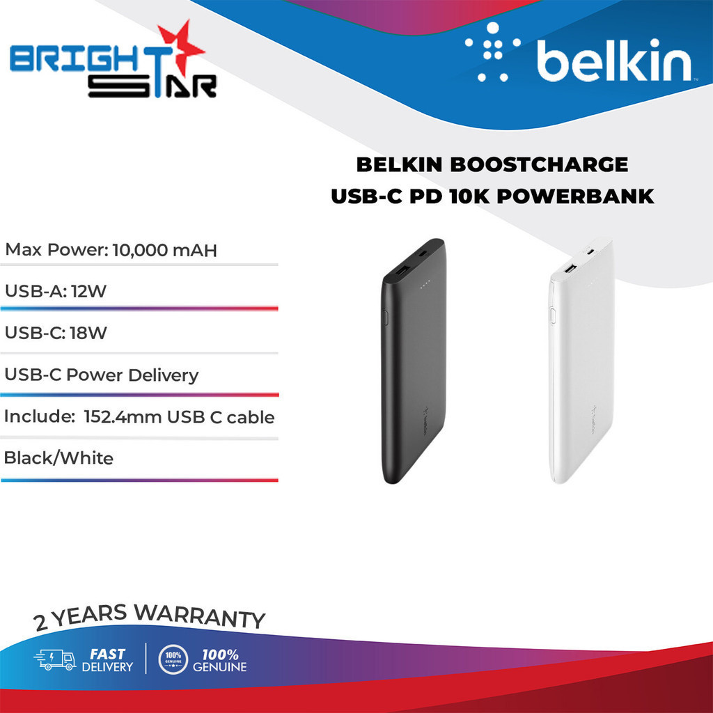 BELKIN BoostCharge USB-C PD 10000mAH Powerbank (2 Years-Black/White)