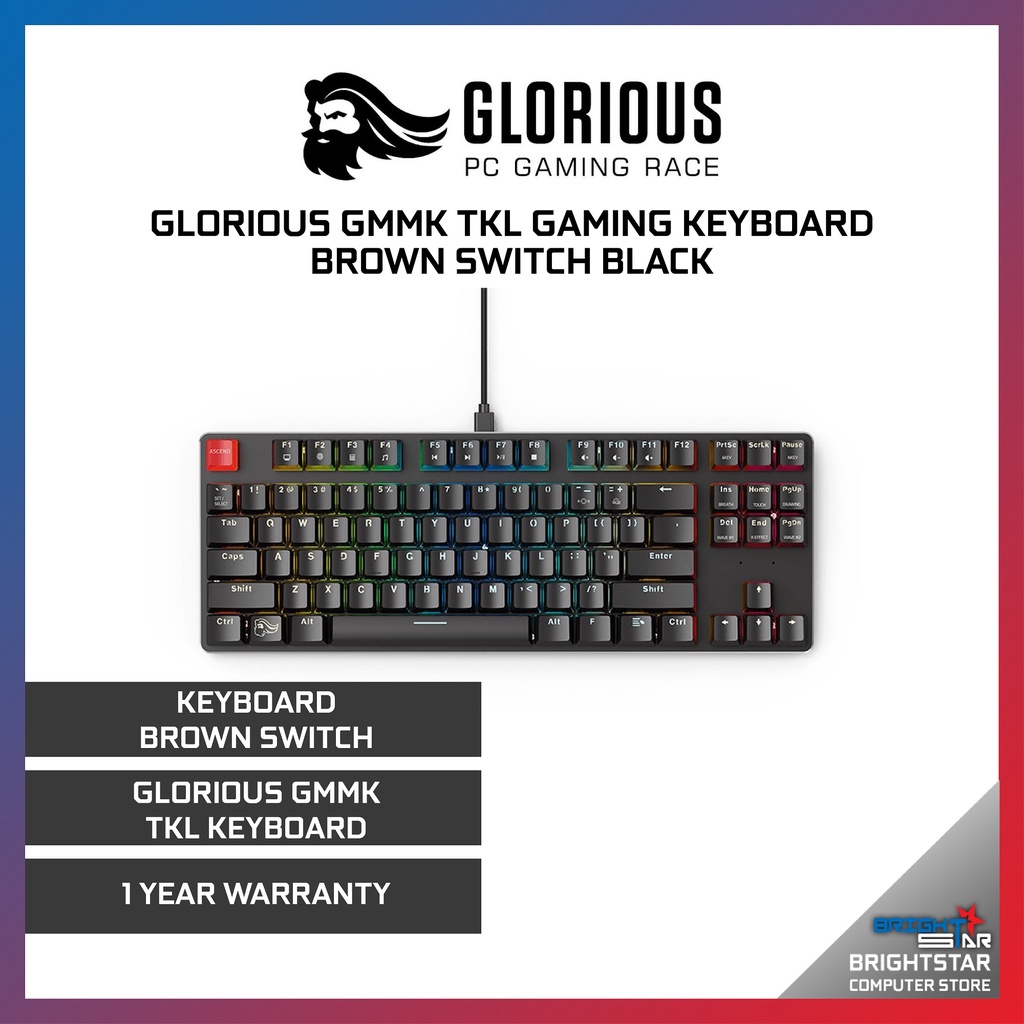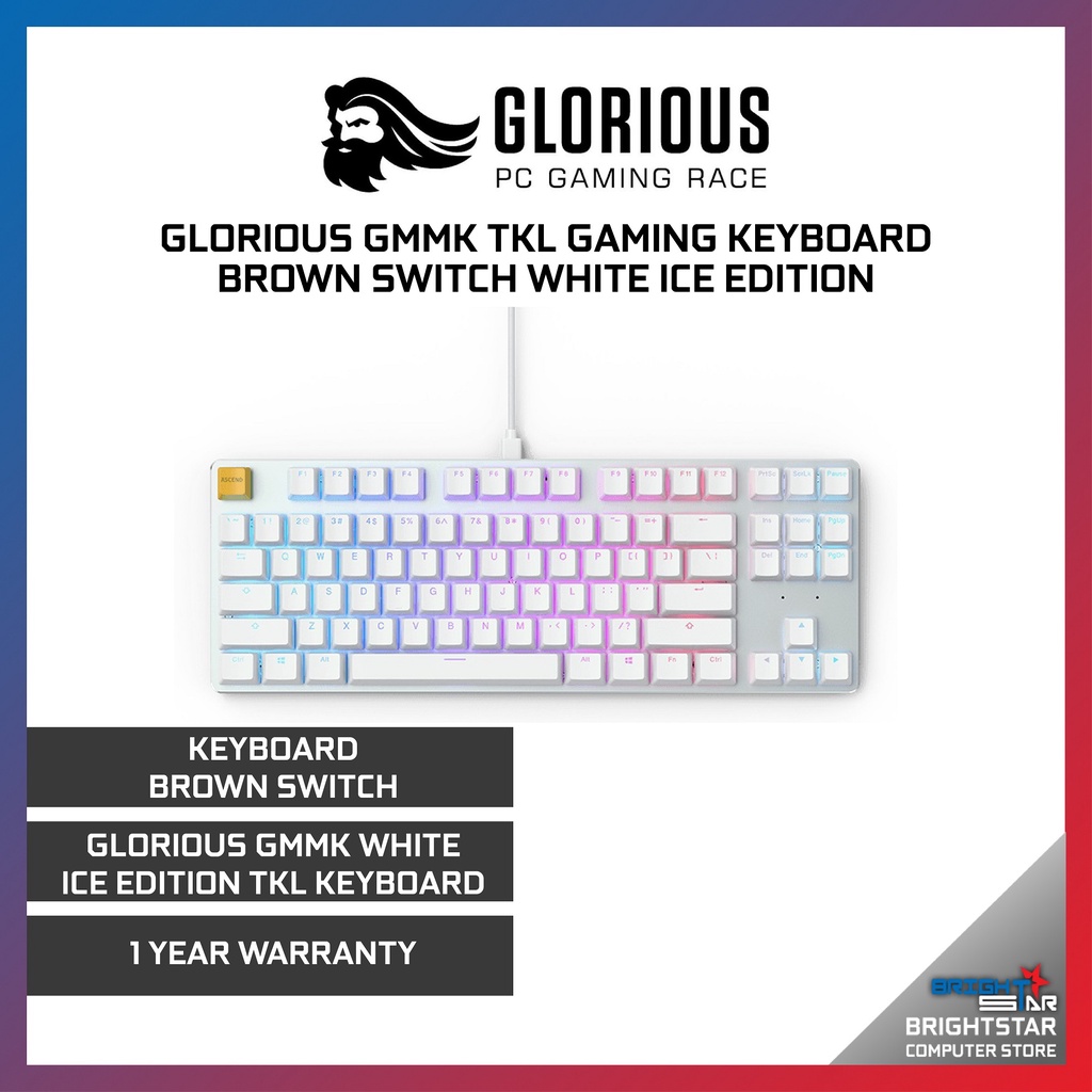 Glorious GMMK TKL Gaming Keyboard Brown Switch Black / White Ice Edition