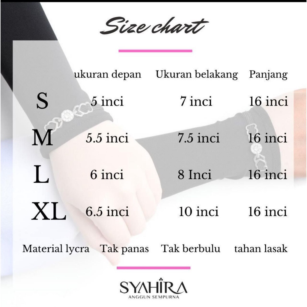 Handsock Syahira Signature.Hand socks wanita muslimah.Sarung lengan inner anti melorot lycra premium selesa tak gatal