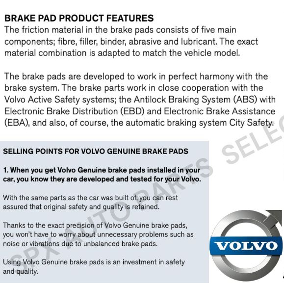 VOLVO ORIGINAL DISC BRAKE PAD (FRONT, REAR) FOR VOLVO XC40 [536] '17YR-ON / EX30 [416] '23YR-ON / LYNK & CO 01 02 03