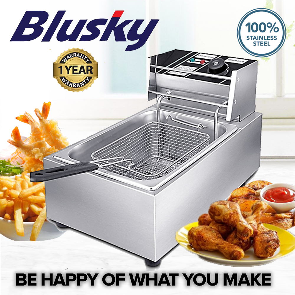 BLUSKY/BRAVADO Fryer Commercial Stainless Steel Single Tank Electric Deep Fryer Basket (6L) | Goreng Ayam Nugget Kentang