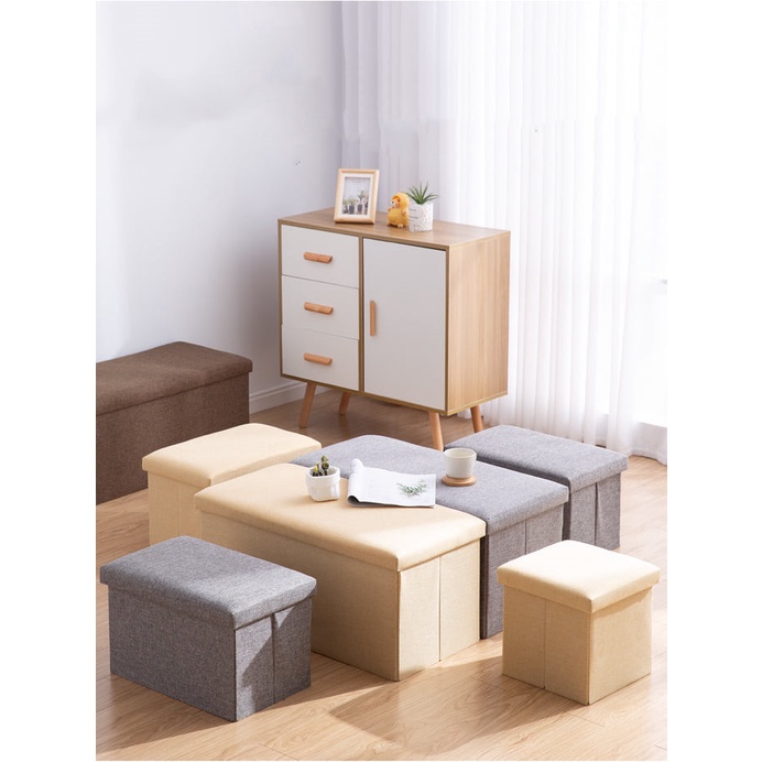 (1 PCS) M SIZE Multifunction Folding Fabric Chair Stool Storage Box Furniture Foldable Home Footrest Chair Bench Seat