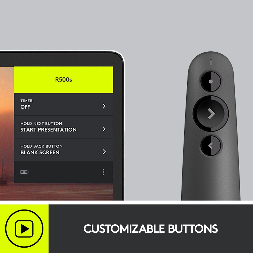 Logitech R500s Laser Class 1 Presenter Bluetooth and USB / Presentation Clicker - Universal Compatibility, 20m range