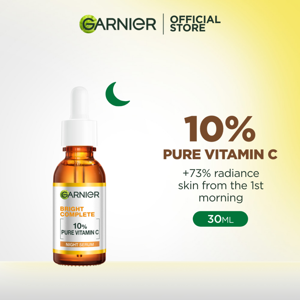Garnier Bright Complete Overnight Brightening Booster Serum 30ml - Visible Radiance and Reduced Dark Spots Overnight