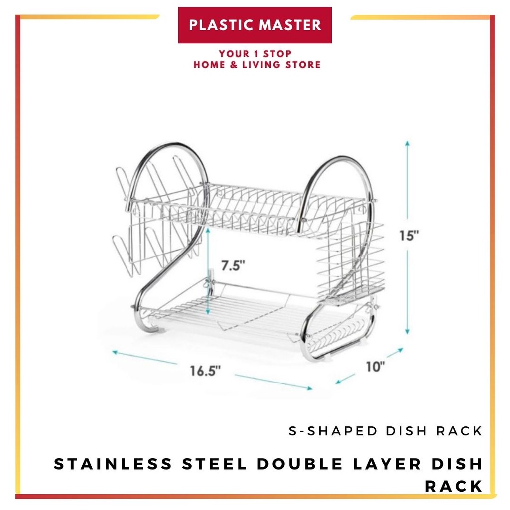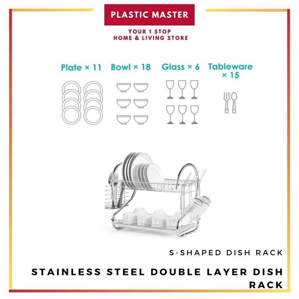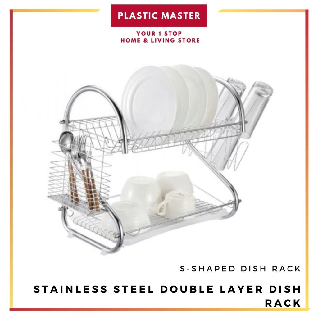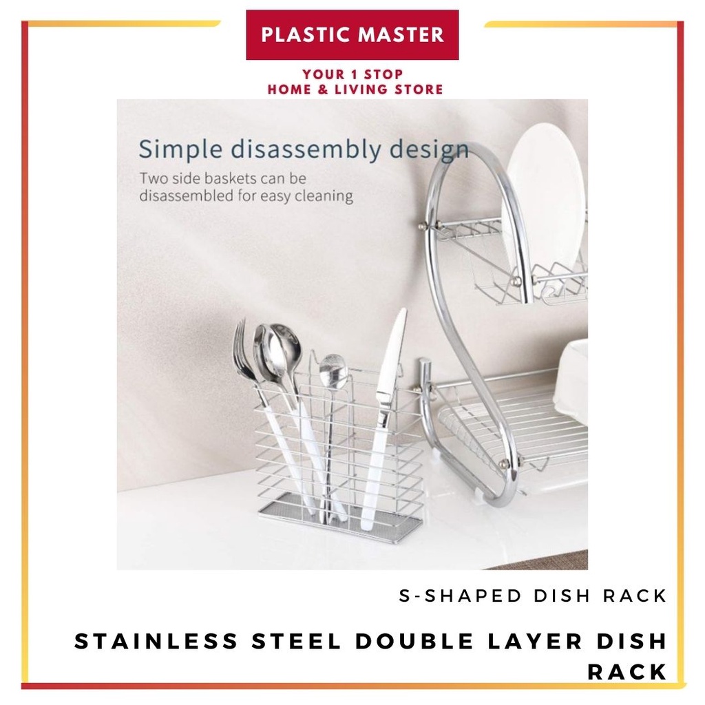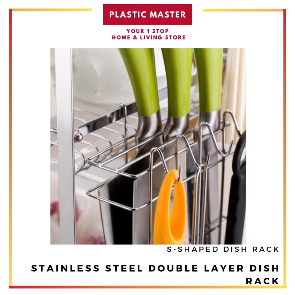 Stainless Double layer Steel Dish Drainer Drying Rack Dish Rack Bowl Shelf Organizer Nonslip Cutlery Holder