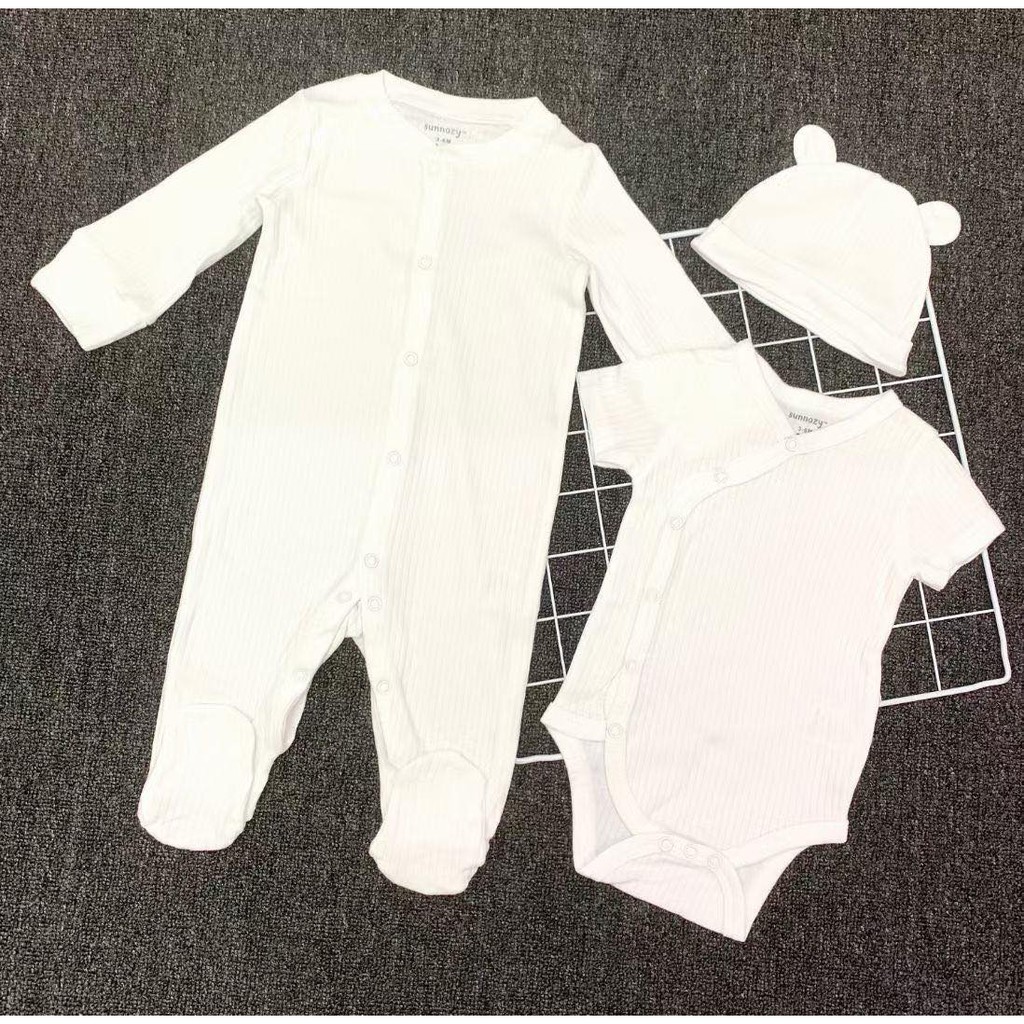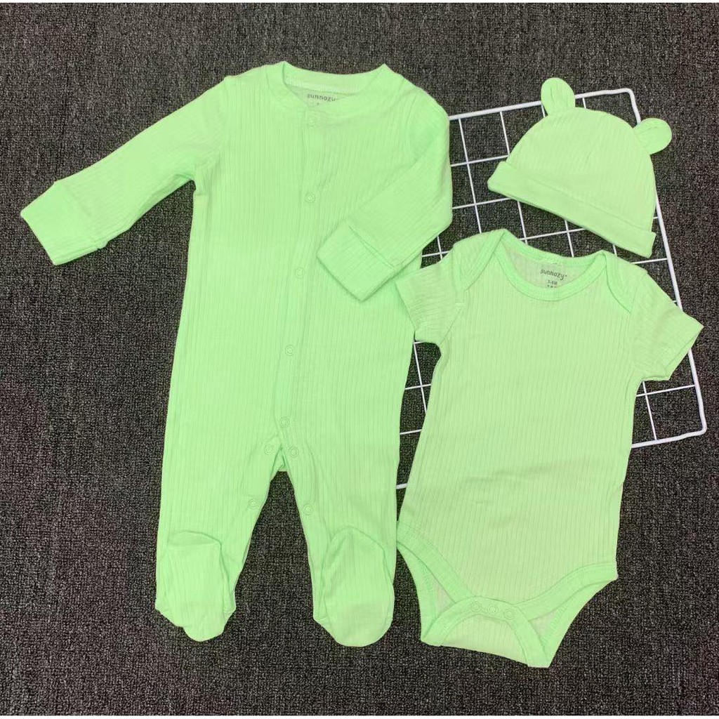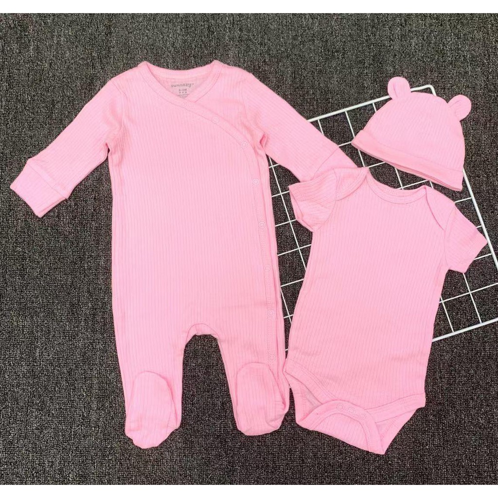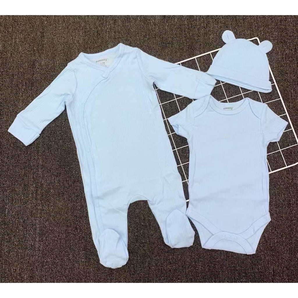 (New Arrival) Sunnozy Newborn Baby set Soft Touch Fabric 3 in 1 Comfortable Plain Clothing set