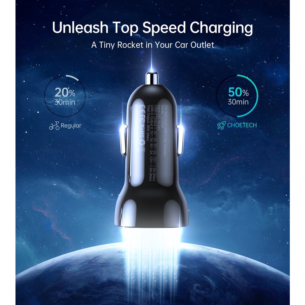 CHOETECH TC0008 40W PD Dual USB C Car Charger Adapter for iPhone 12 13 14 15 Pro Max / Samsung / Huawei