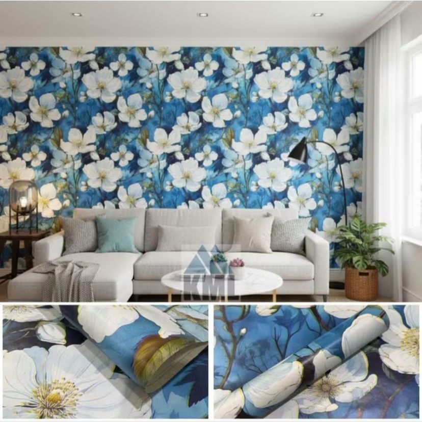 PVC Wall Paper with Lily Flower Pattern Whitebiru 7s/ 8m L3bar 45cm