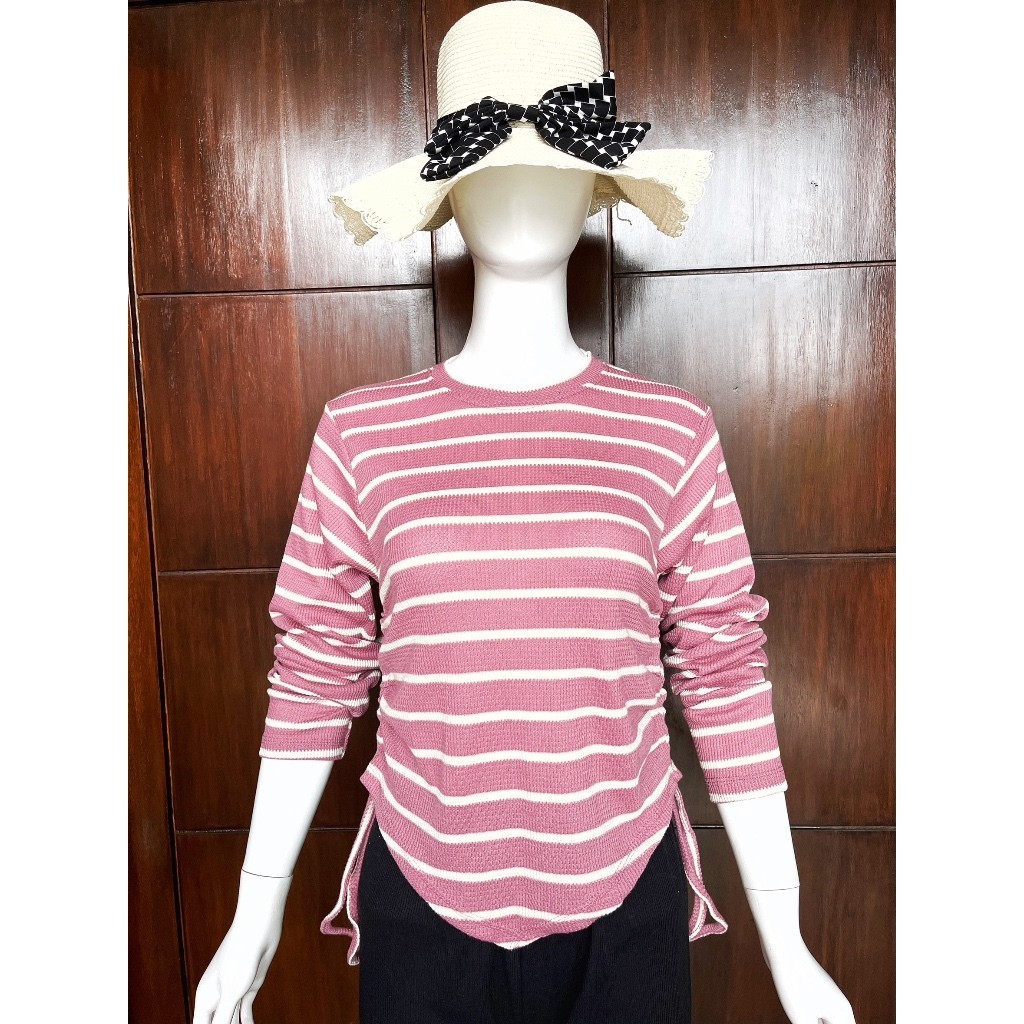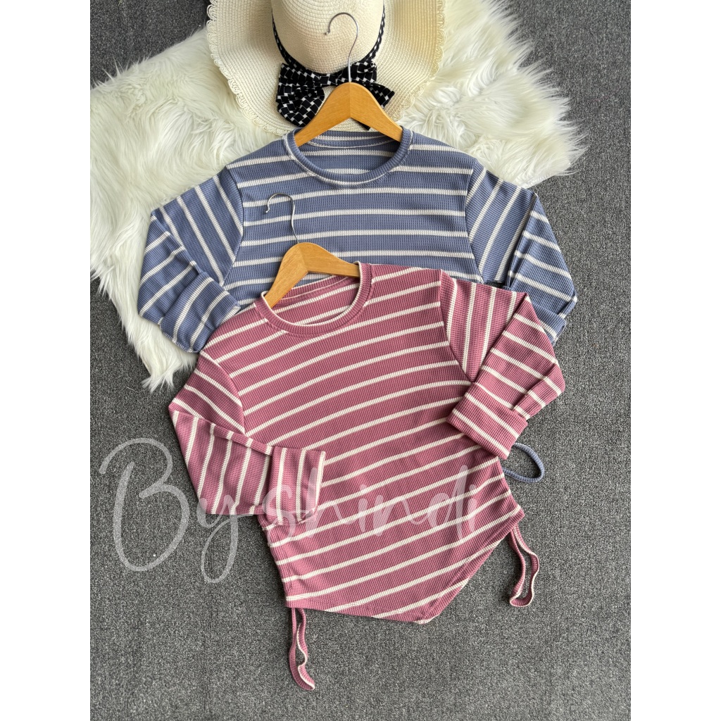 By shindi - Side Drawstring Blouse Top / Women's Long Sleeve Top / Long sleeve t-shirt