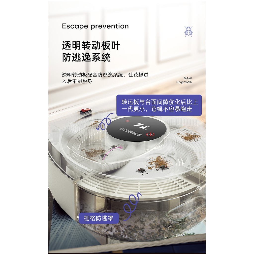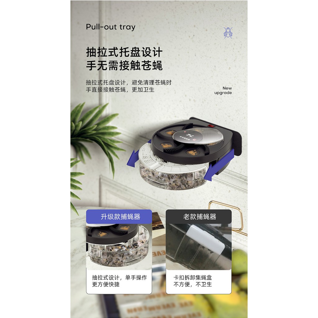 Wireless Fly Flies Trap Killer Auto Catch Artifact Rechargeable Perangkap Lalat Automatik Eletronik捕蝇器充电自动扇叶无线灭蝇灯餐厅捕苍蝇神器