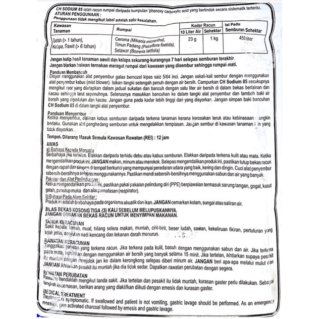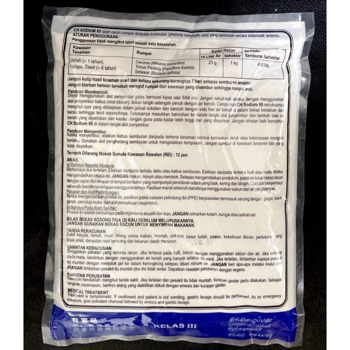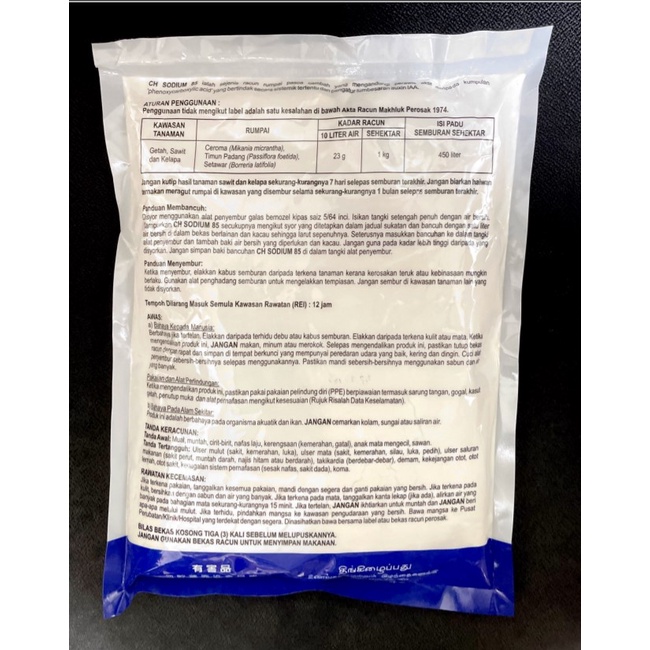 CH SODIUM 85 ( 500G / 1KG ) Racun Rumput Rumpai Ready Stock Herbicide Sodium Monohydrate 85%
