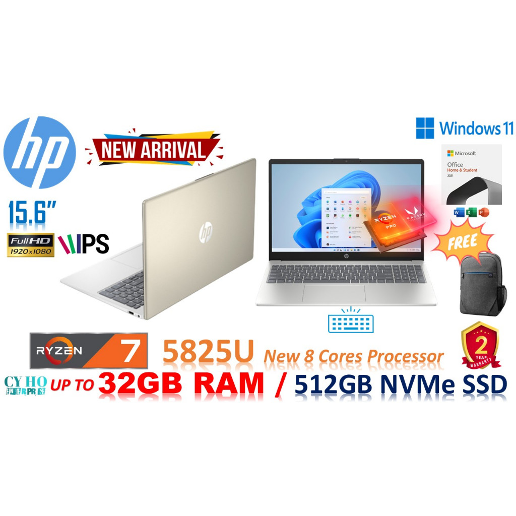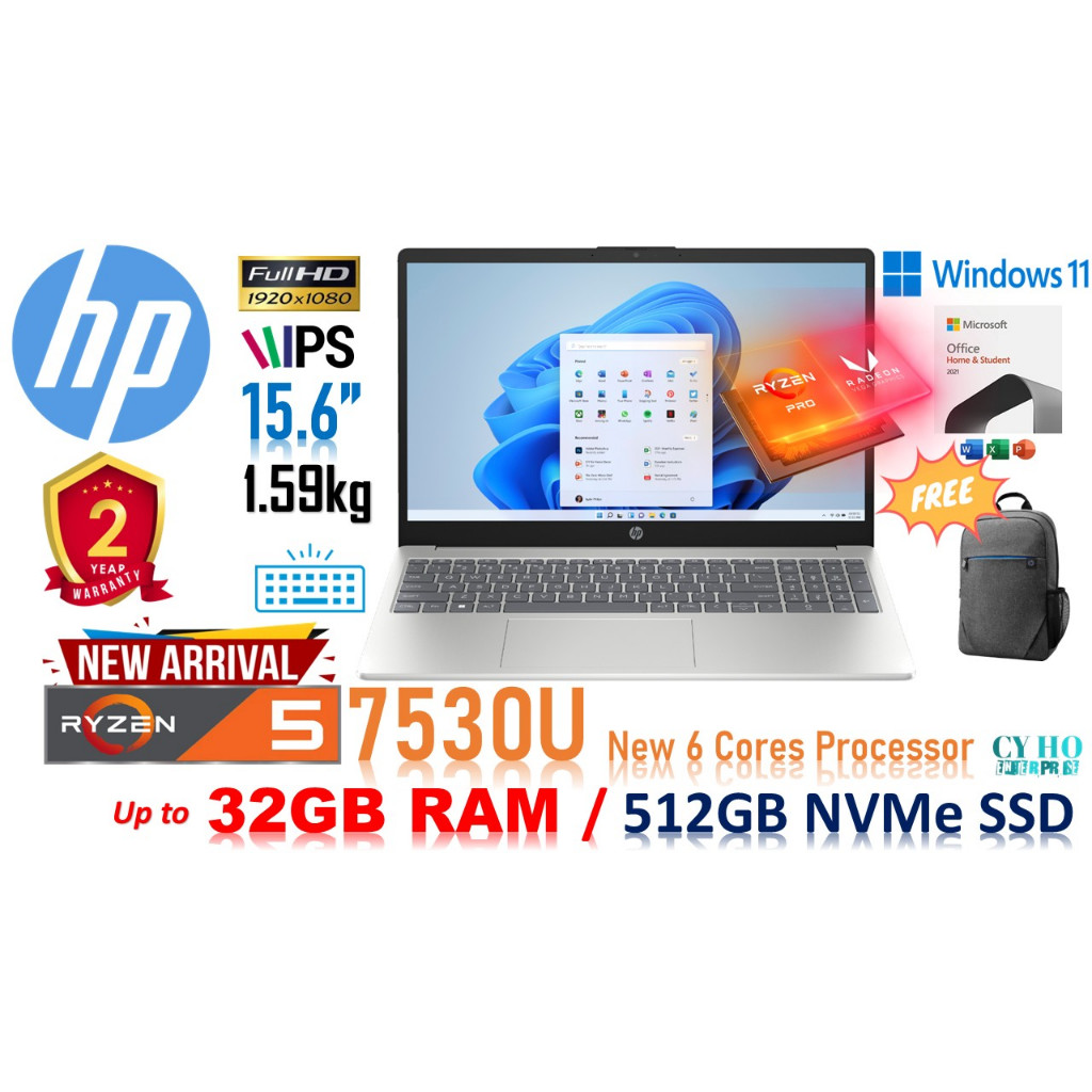 HP 15-FC Ryzen 5-7530U / Ryzen 7-5825U 512GB SSD/up to 32GB RAM/15.6"FHD/WIN-11 + MS-OFFICE 2024 (NEW VERSION)