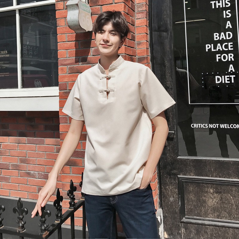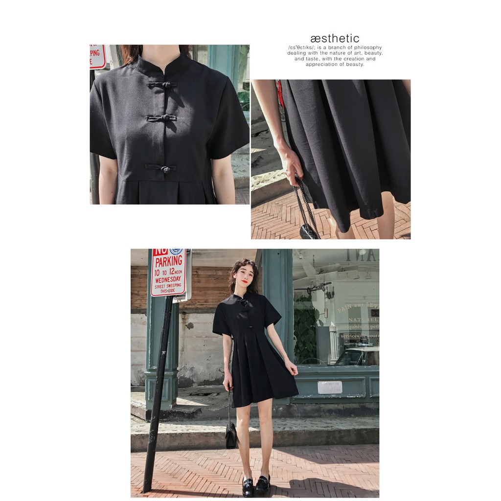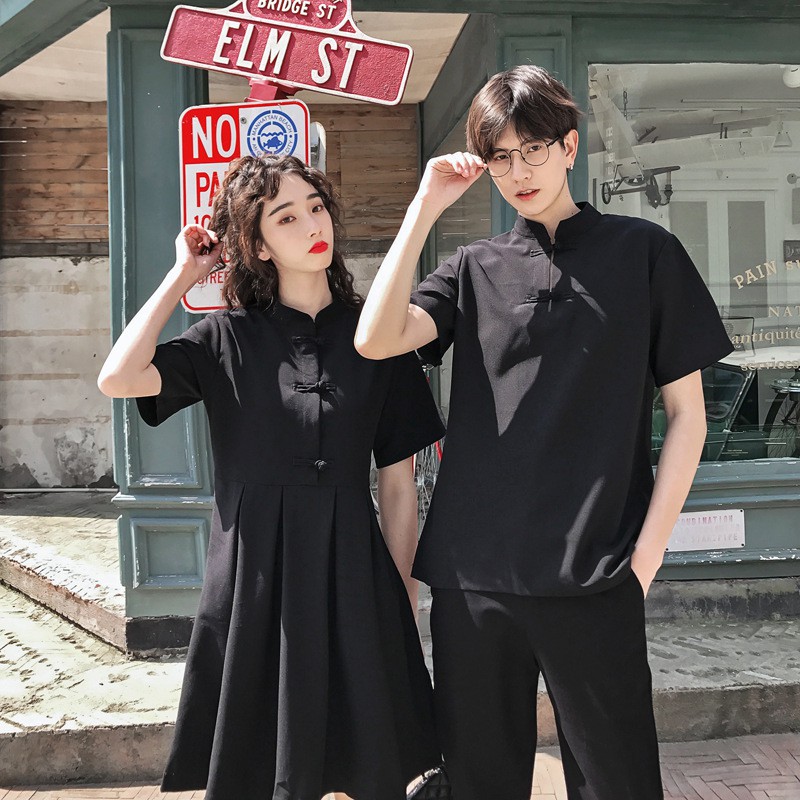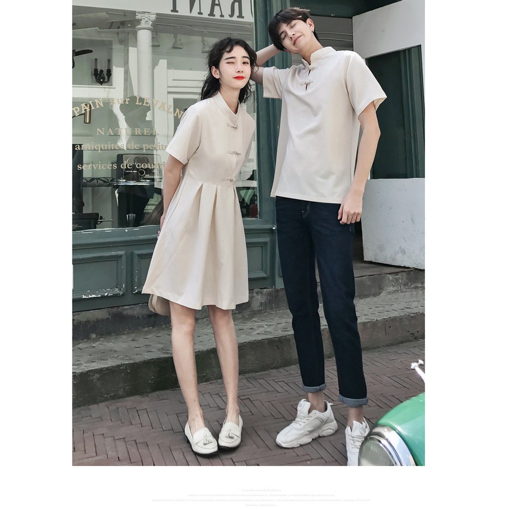 【XIAO】Couple set summer cheongsam short sleeve women buckle dress men shirt