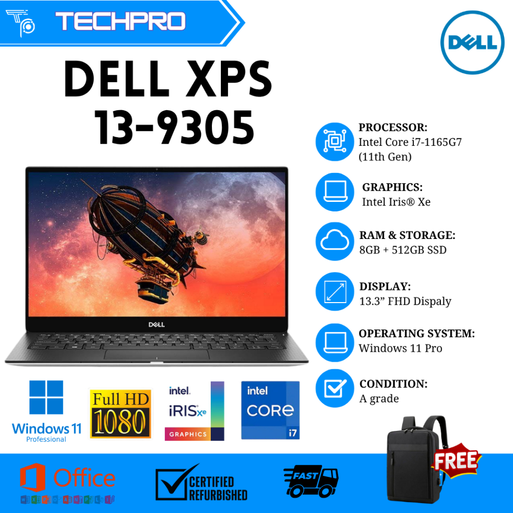 LAPTOP DELL XPS 13 9305 9300 7390, 9365, 9360, 9370, i7 11th Generation 4k touchscreen 16GB 512GB Slim Premium Laptop