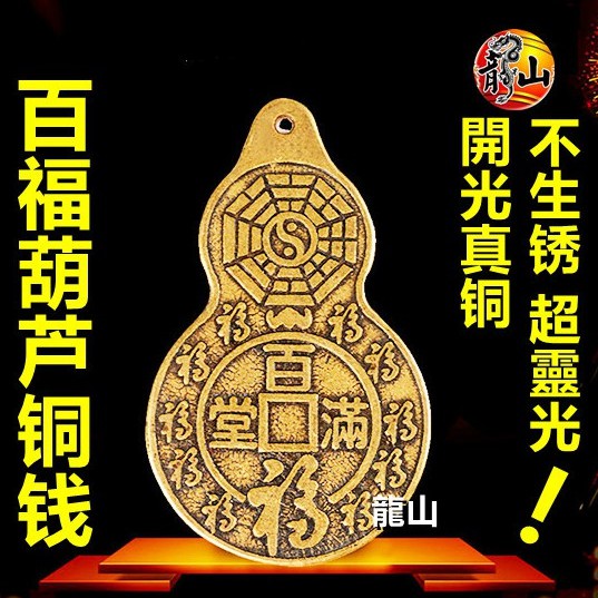 【 铜钱 】特大 百福葫芦型顺字 COPPER COIN 58mm FENG SHUI COPPER COIN 開光真铜 不生锈 超靈光!事事顺心 心想事成 招财 镇宅 辟邪 平安 / 铜钱 古币 - 龍山