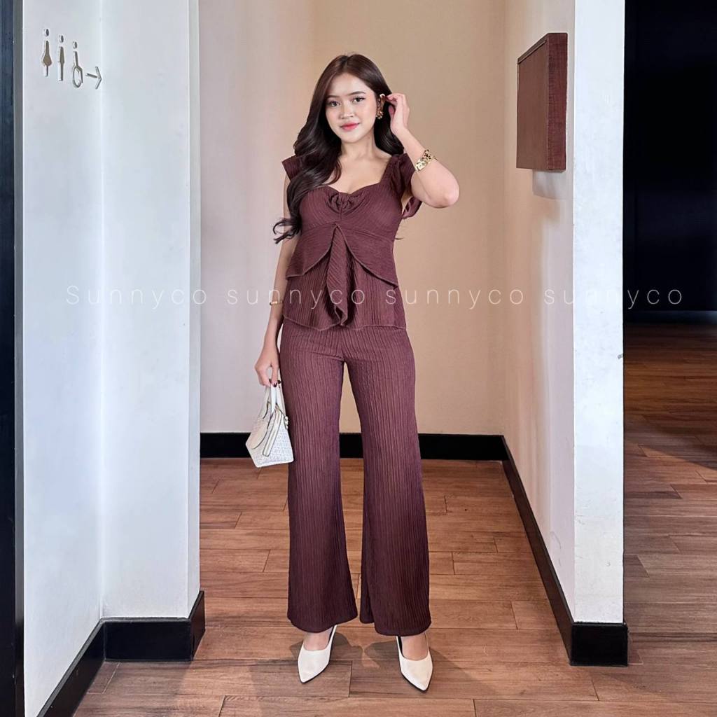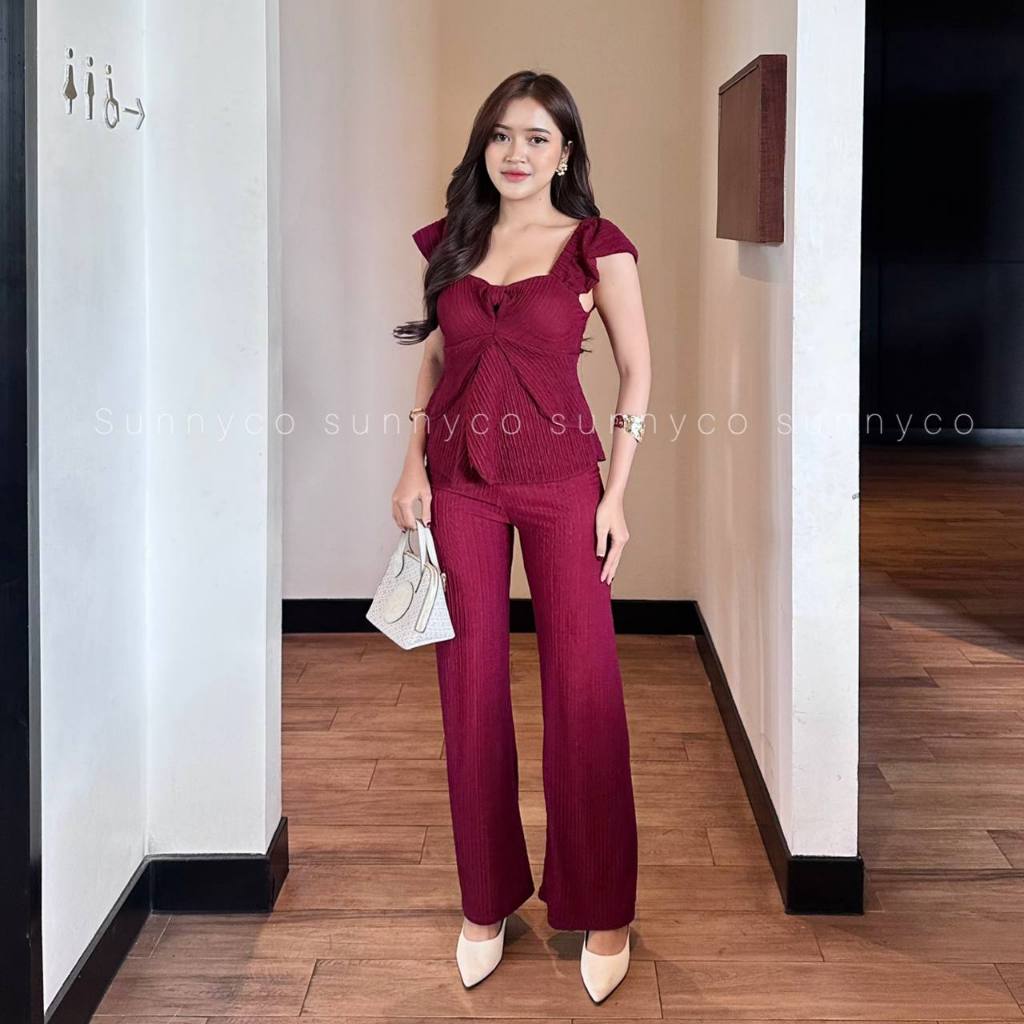 MAWAR AUDRY ONE SET ROSE-SHAPED TOP SET LADY CRUSH SET Baju Set Seluar Blouse Korean Style Set OOTD Set