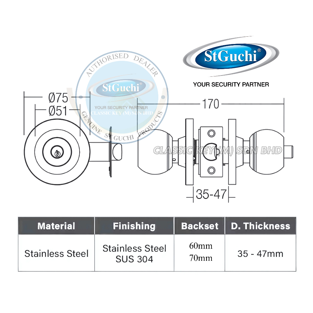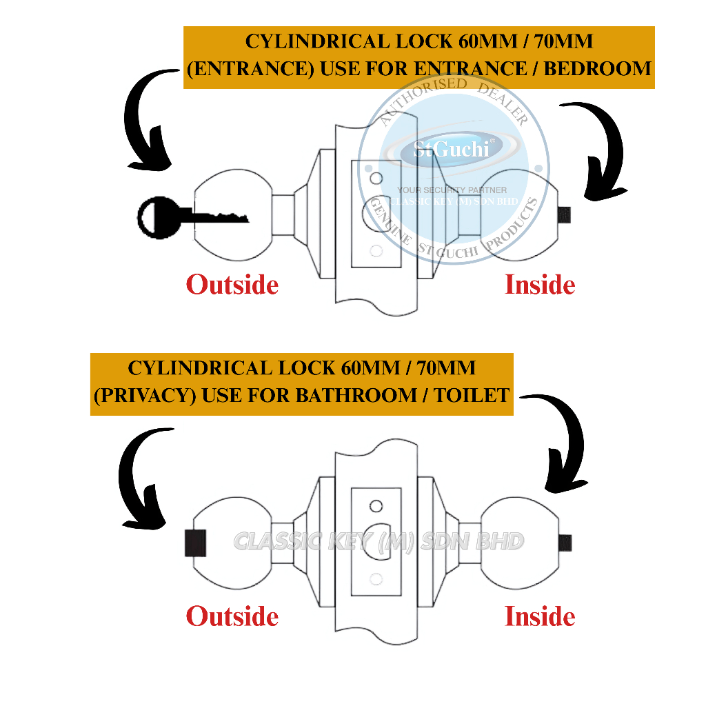 St Guchi Cylindrical Door Knob Lock Set SGCD 3400 - SGCD 4300 - SGCD 4500 Tombol Pintu Bilik Rumah