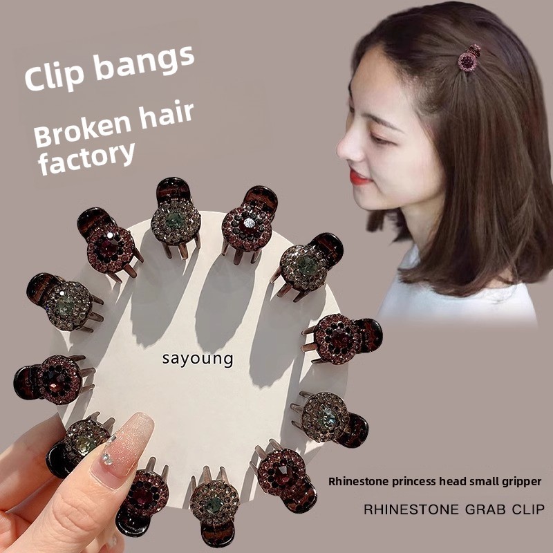 Set Flash Diamond Mini Small Grab Clip Female Bangs Broken Hair Side Hairpin Princess Head Hairpin Top of Head Small Clip Headgear