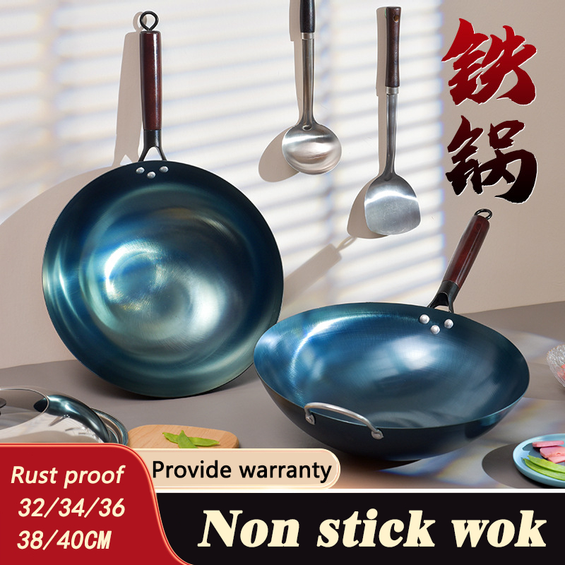 Iron Wok Carbon Steel Wok NoChemical NoCoating Metal Wok Cooking Pan Kuali Besi Kuali Goreng鐵鍋已開鍋