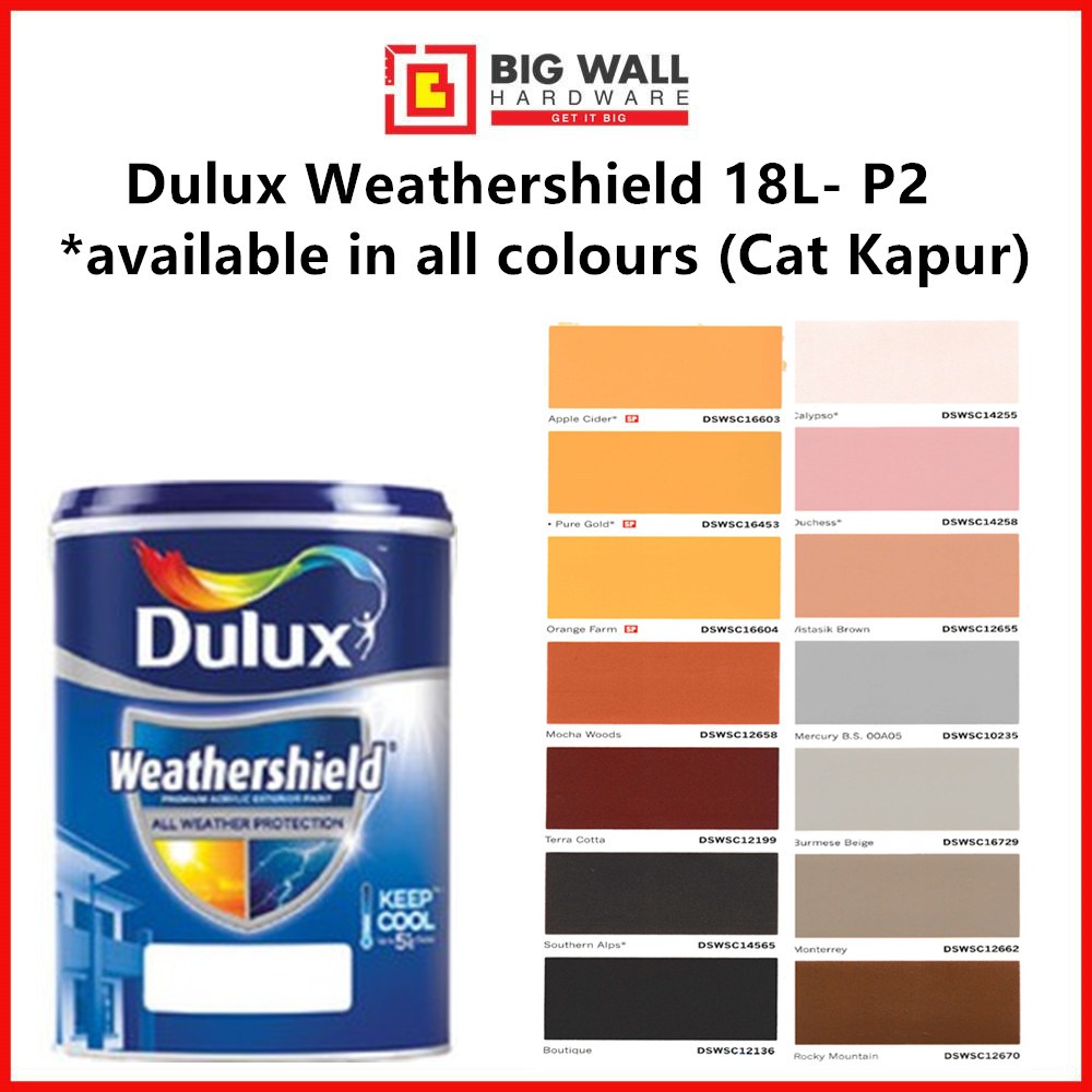 Dulux Weathershield 18L- P2 *available in all colours (Cat Kapur) Big Wall Hardware