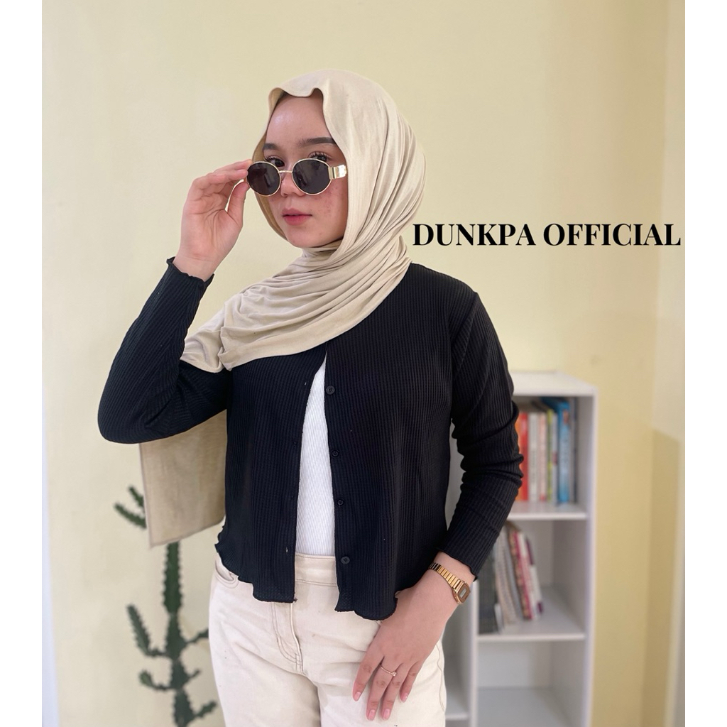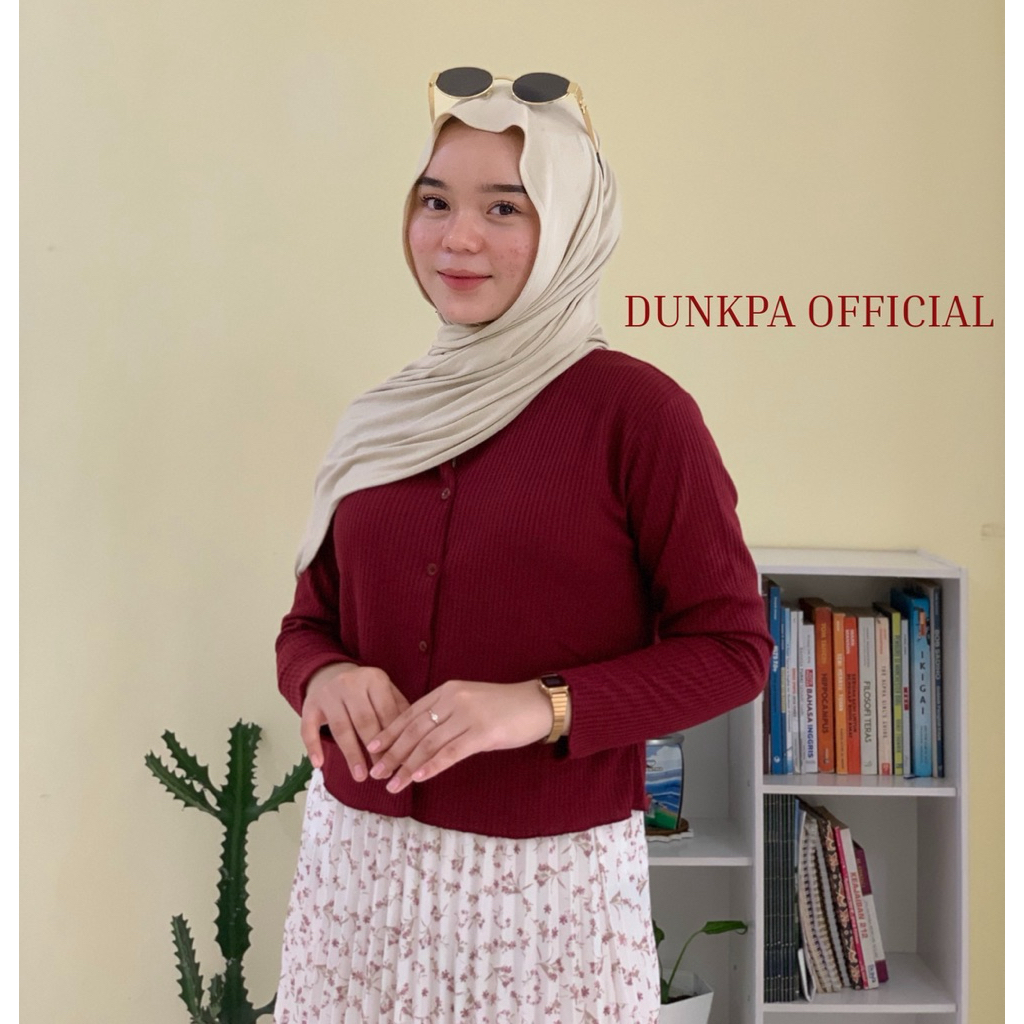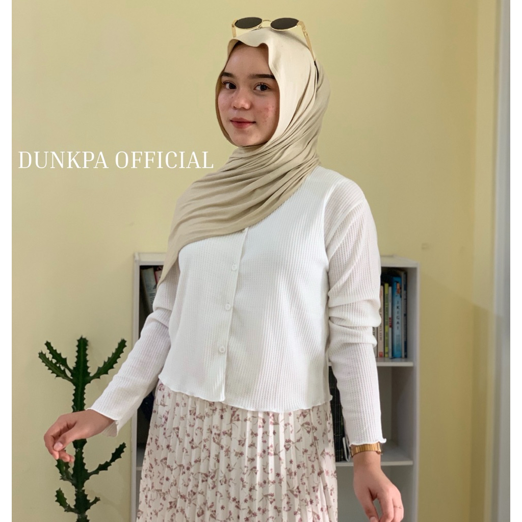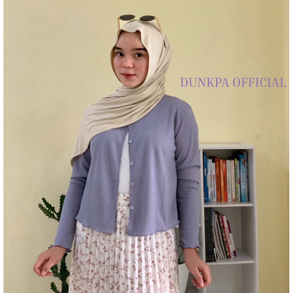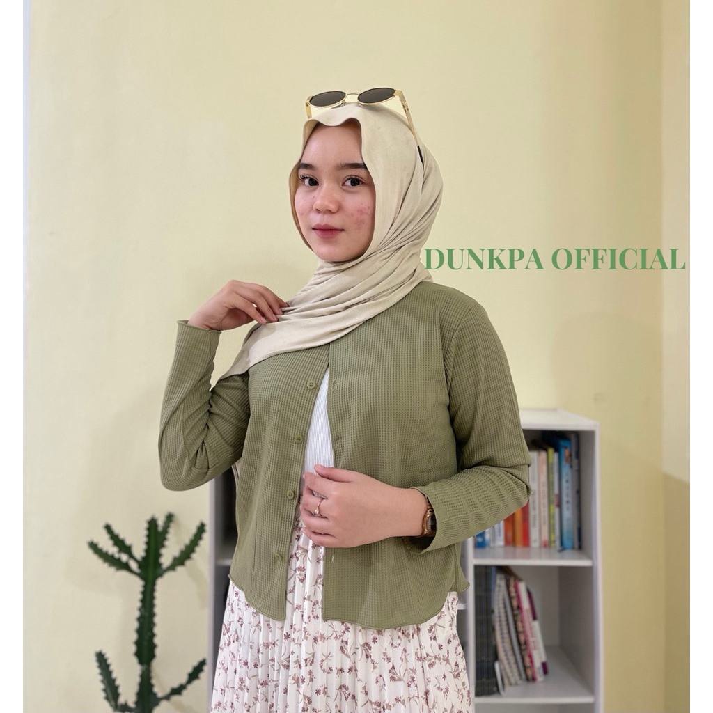 DUNKPA Cardigan Outer Korean Style Wafer Crop Top Pinned Long Sleeve Cardigan Woman