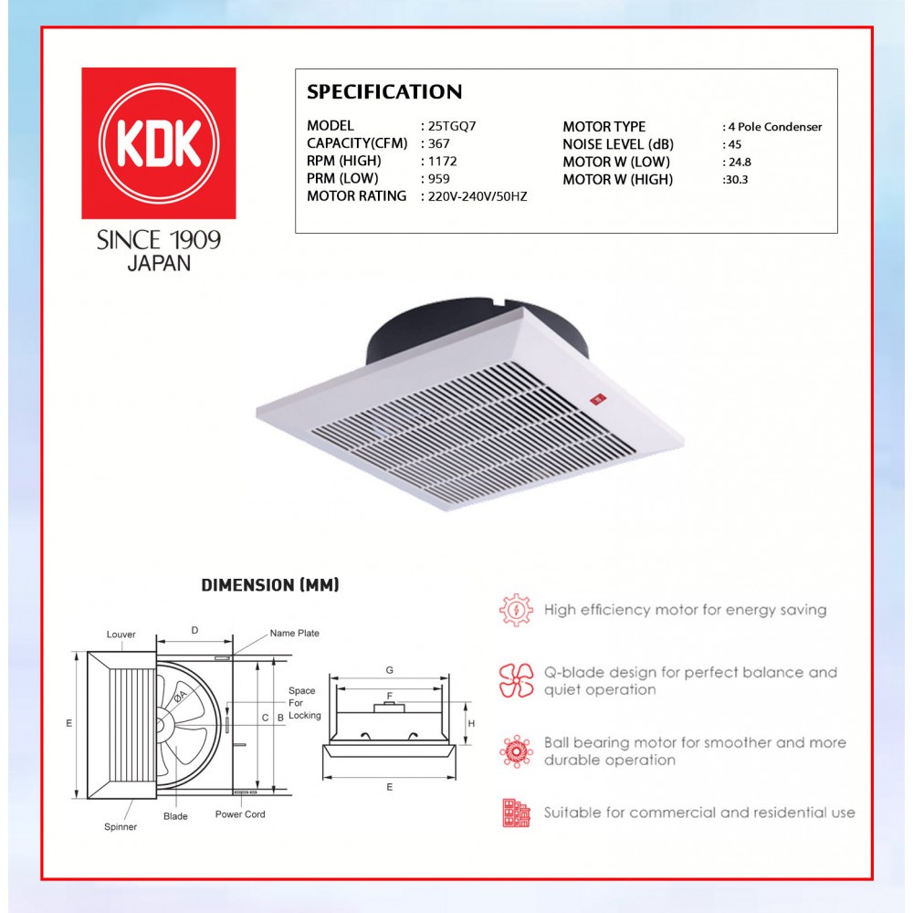 KDK CEILING VENTILATION EXHAUST FAN CEILING EXHAUST FAN 20TGQF/25TGQ