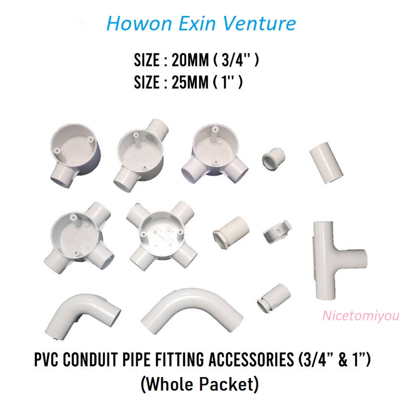 WIRING PVC ACCESSORIES 3/4" (19MM) 1" (25MM) WIRING PVC CONDUIT FITTING [Whole Packet /100Pcs]