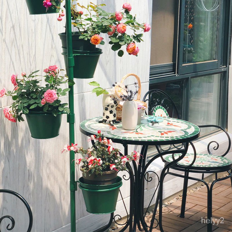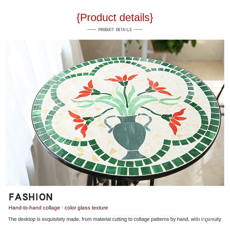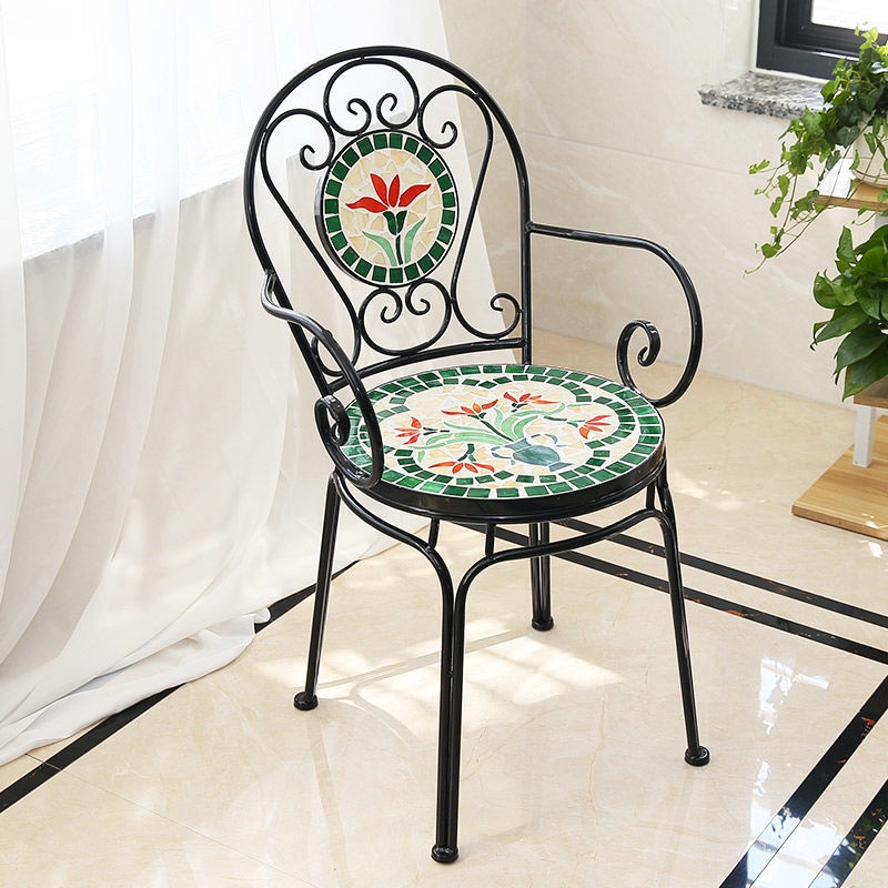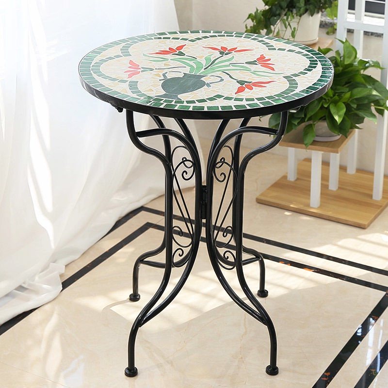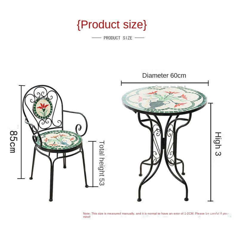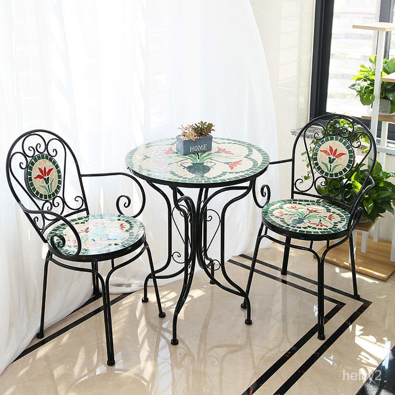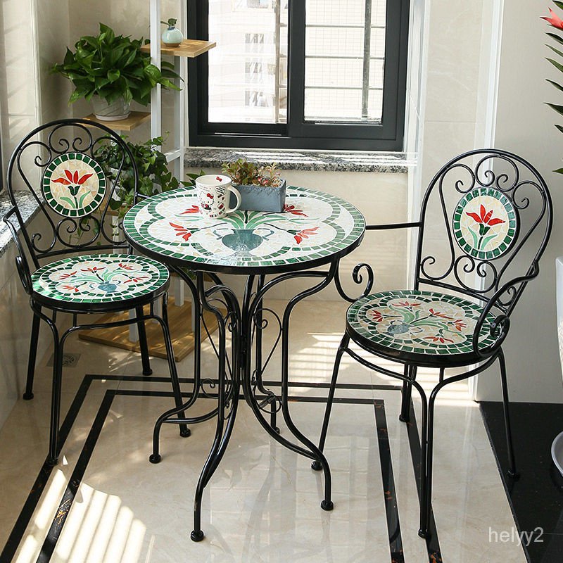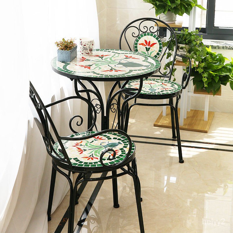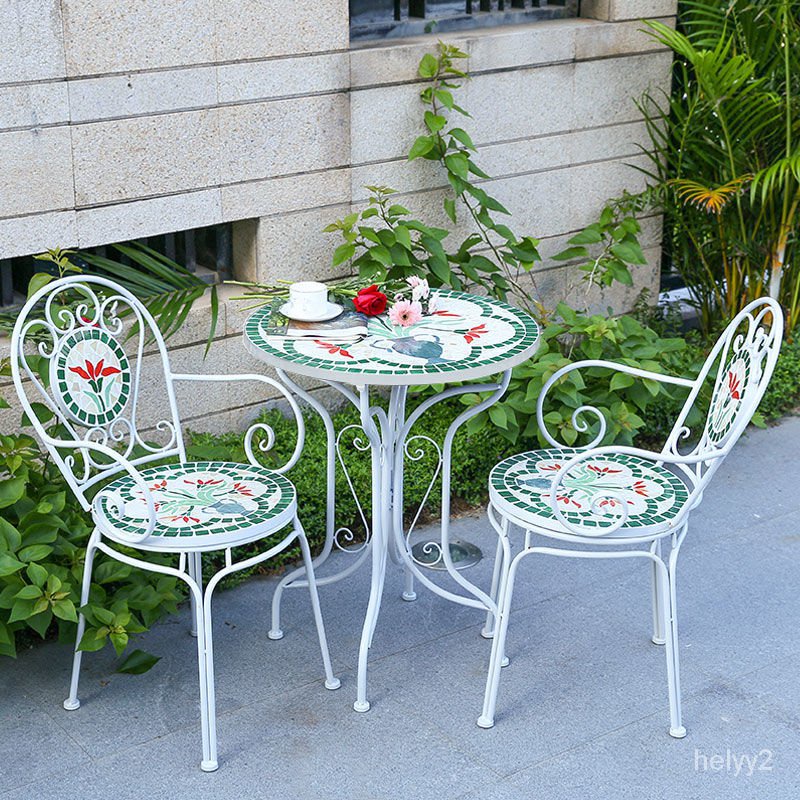 European Outdoor table set mosaic table and chairs wrought iron balcony courtyard coffee leisure open-air coffee table O
