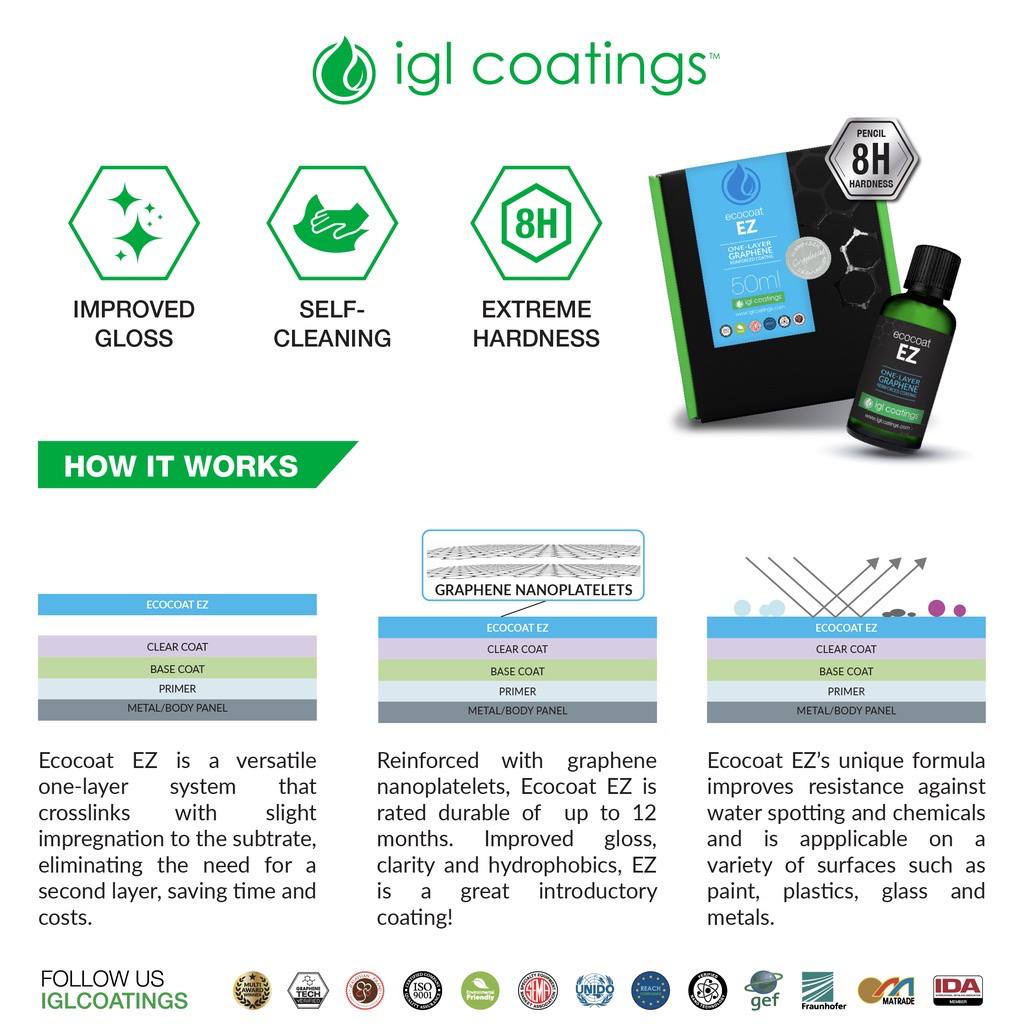 IGL Coating Ecocoat EZ 50ml Graphene Ceramic Nano Coating AntiFog Hydrophobic Rainproof Gloss 汽车涂料涂膜