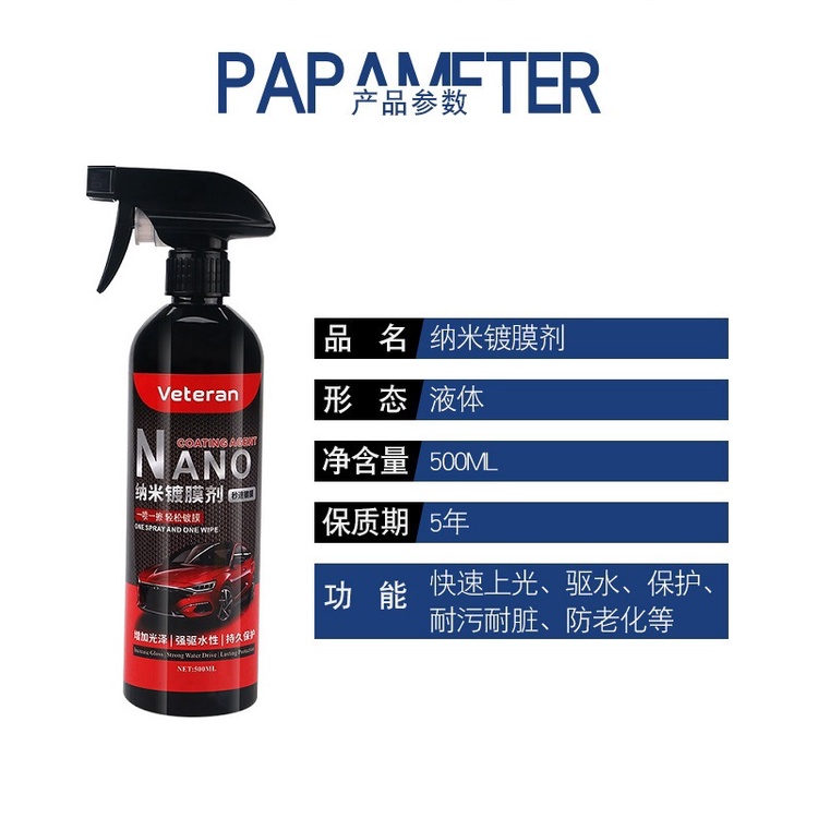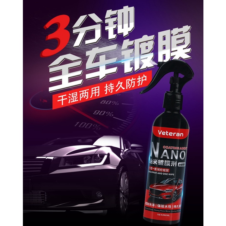 VETERAN Nano Coating Spray And Wipe 500ml Hydrophobic Car Polish Wax Ceramic Coat