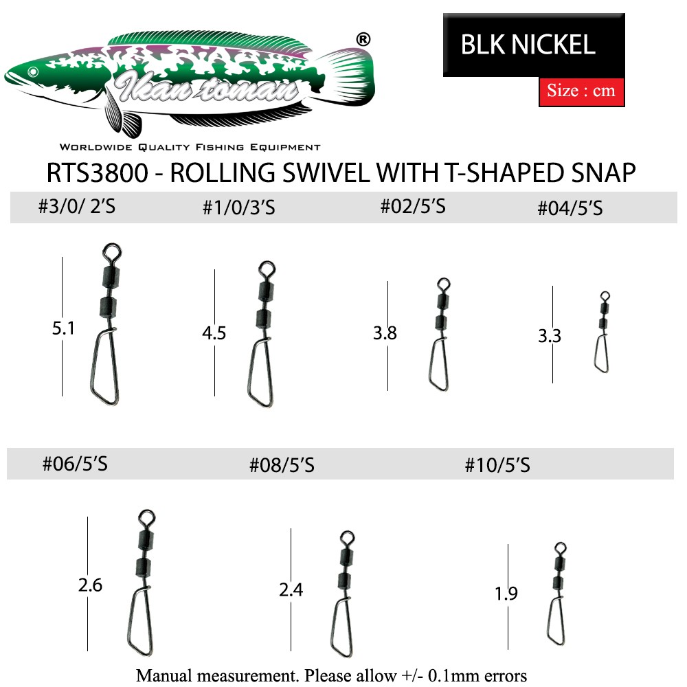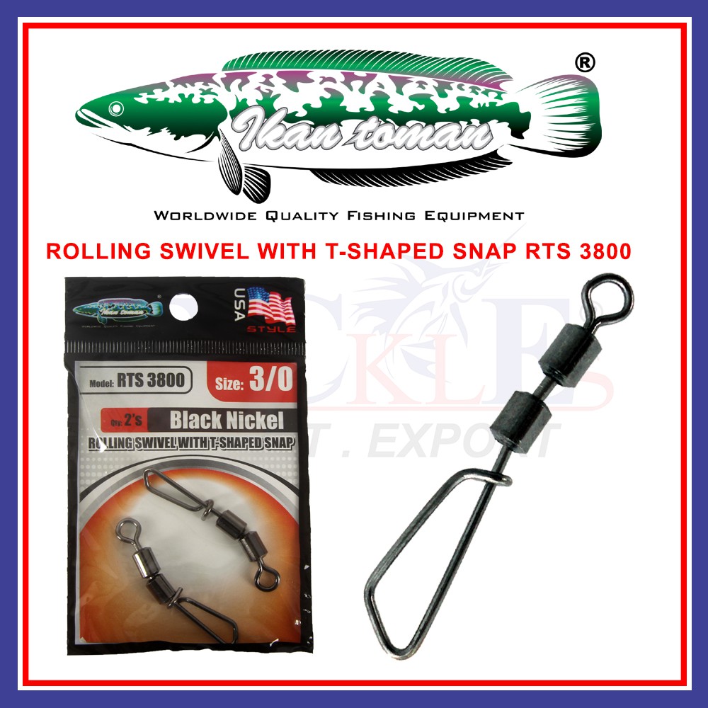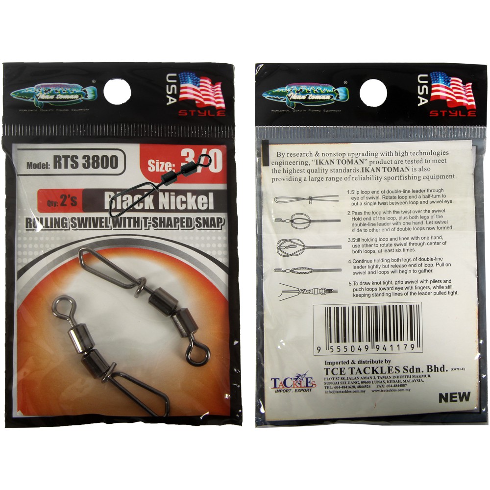 Ikan Toman Rolling Swivel With T-Shaped RTS 3800 Snap Black Nickel (2-5pcs) Fishing Swivel