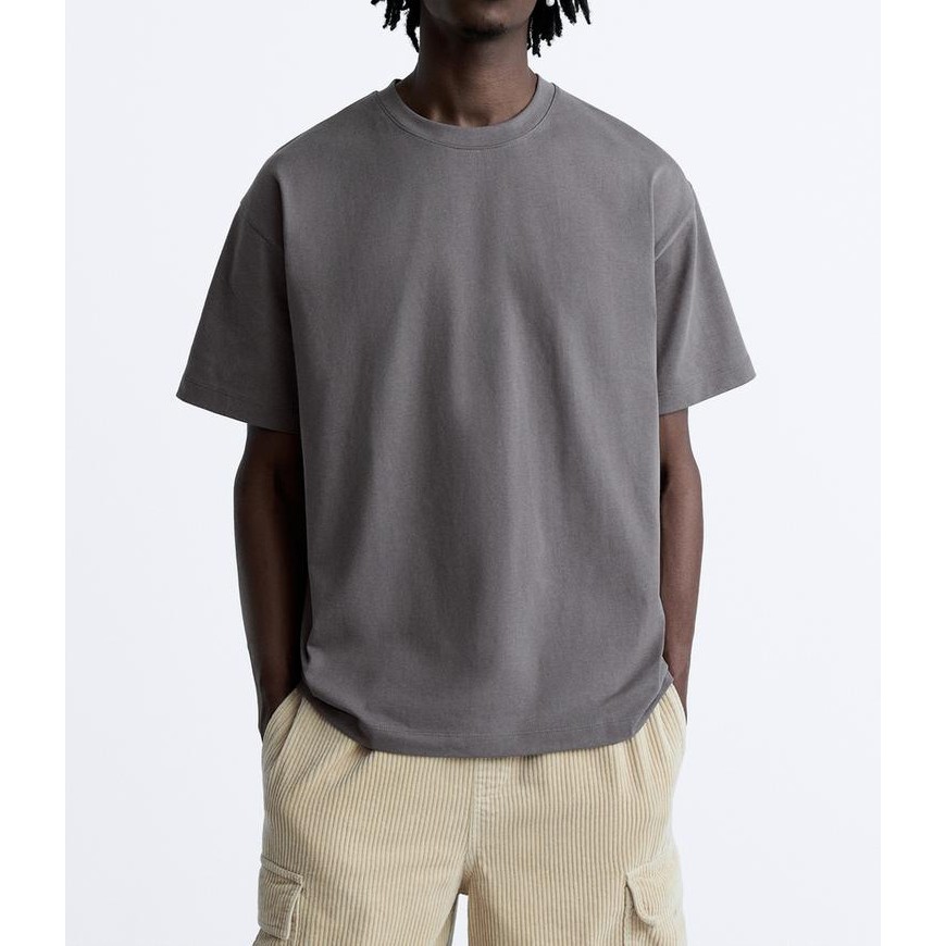 ZA Men's Summer Loose Round Neck Solid Color Short-Sleeved T-Shirt1887450 4087429