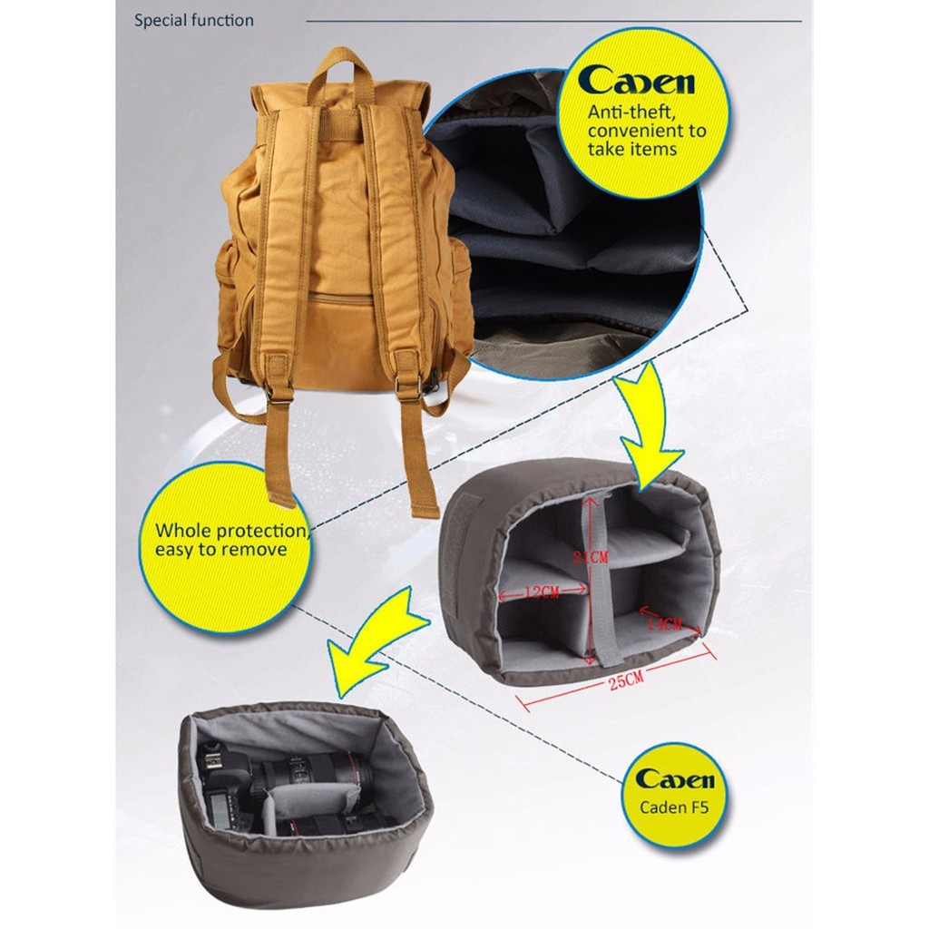 🔥PROMO PRICE🔥 Caden F5 Canvas Camera Backpack with Removable Inner Rucksack Rain Cover