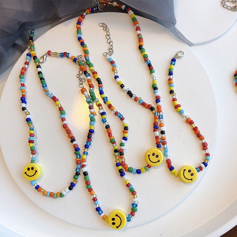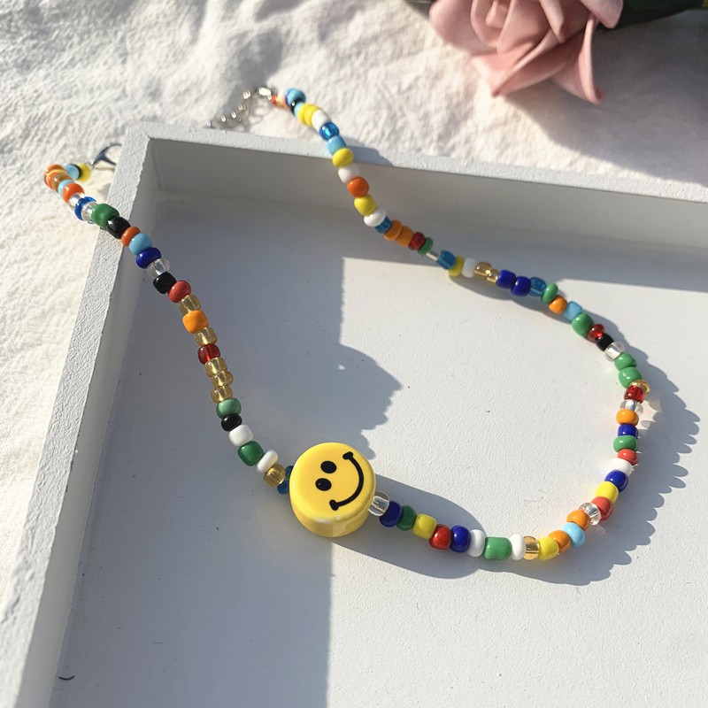 Blackpink Lisa JENNIE Same Smile Face Ceramic Colored Beads Necklace DIY Beads Girl Expression Necklace