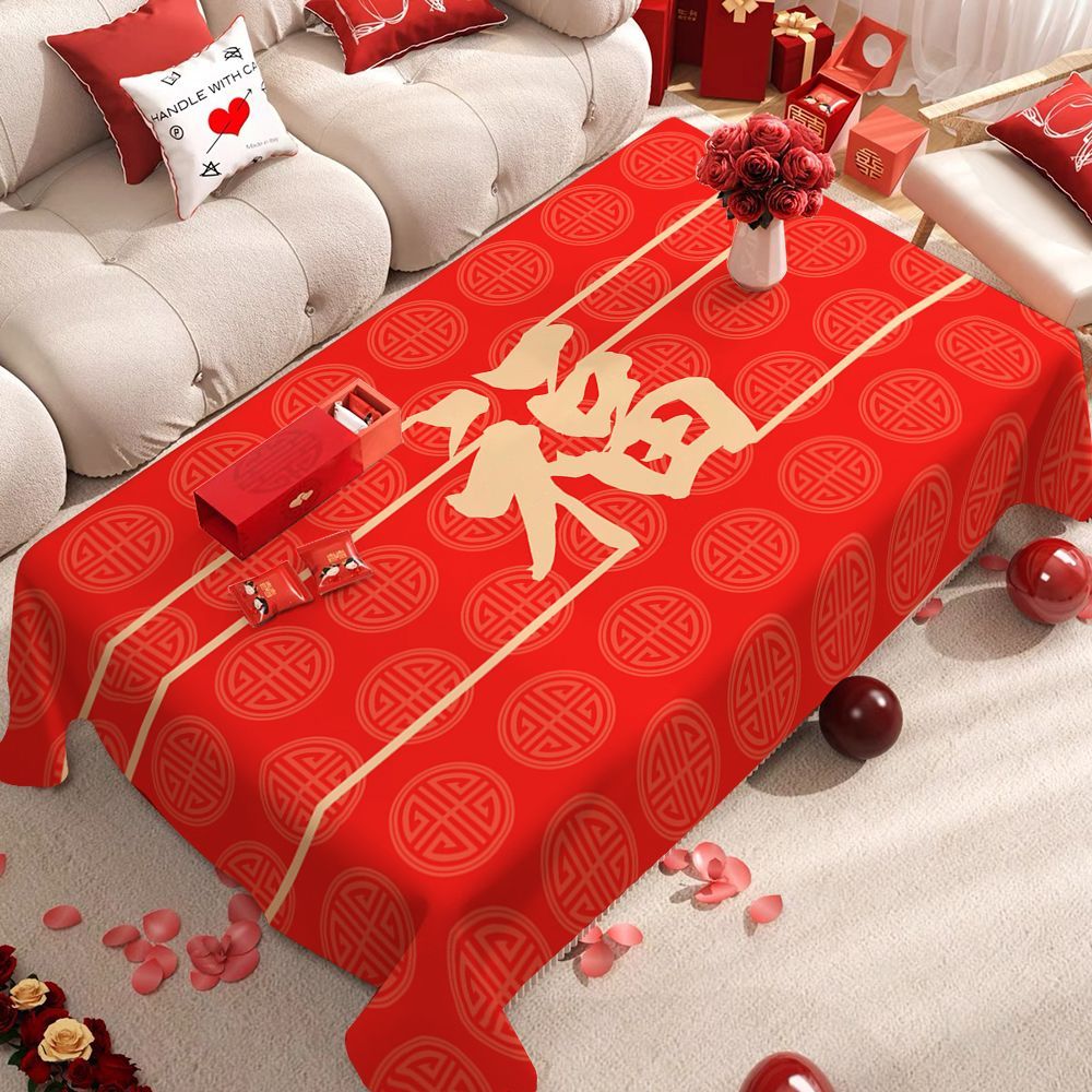 【READT STOCK】新年氛围装饰乔迁桌布新中式婚礼台布风红色餐桌茶几垫布New Year atmosphere decoration housewarming tablecloth new Chinese wedding20260115