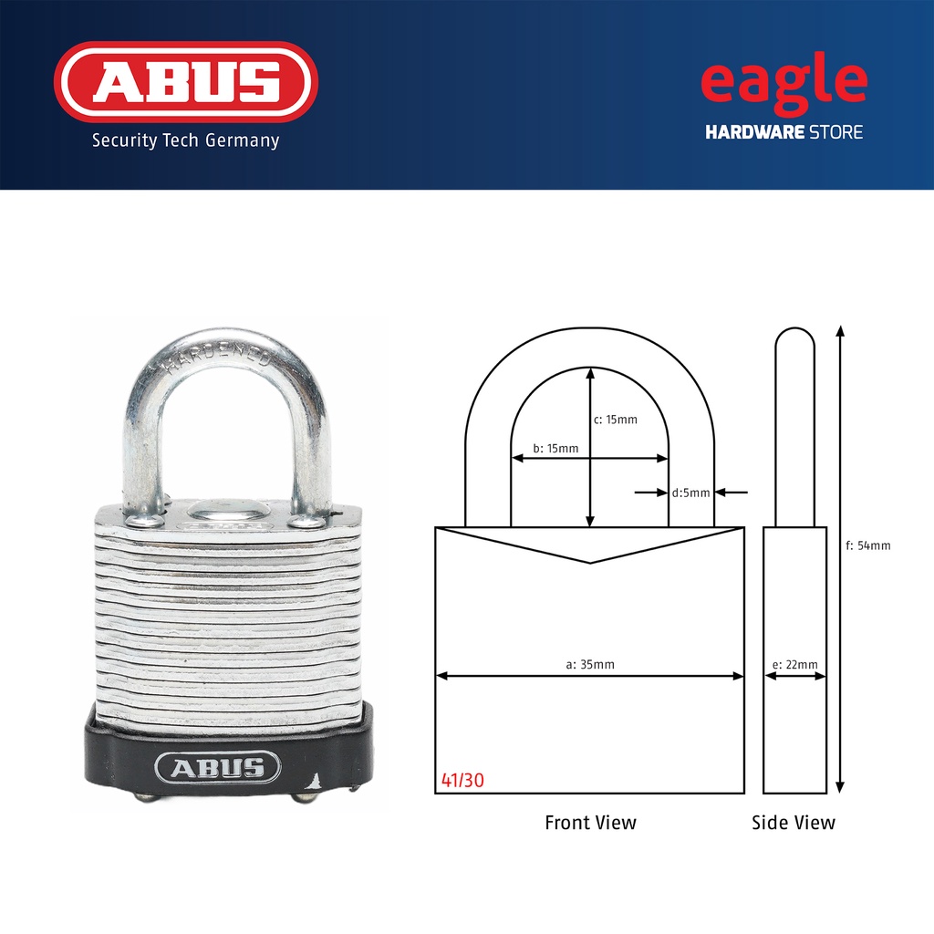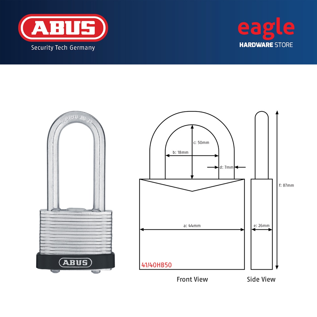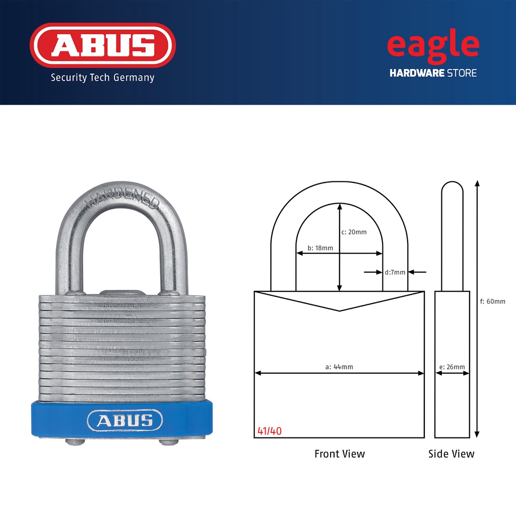 Abus 41/30, 41/40, 41/40HB50, 41/45, 41/50, 41/50HB50 Laminated Padlock. Made In Germany