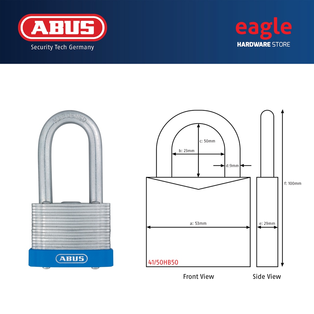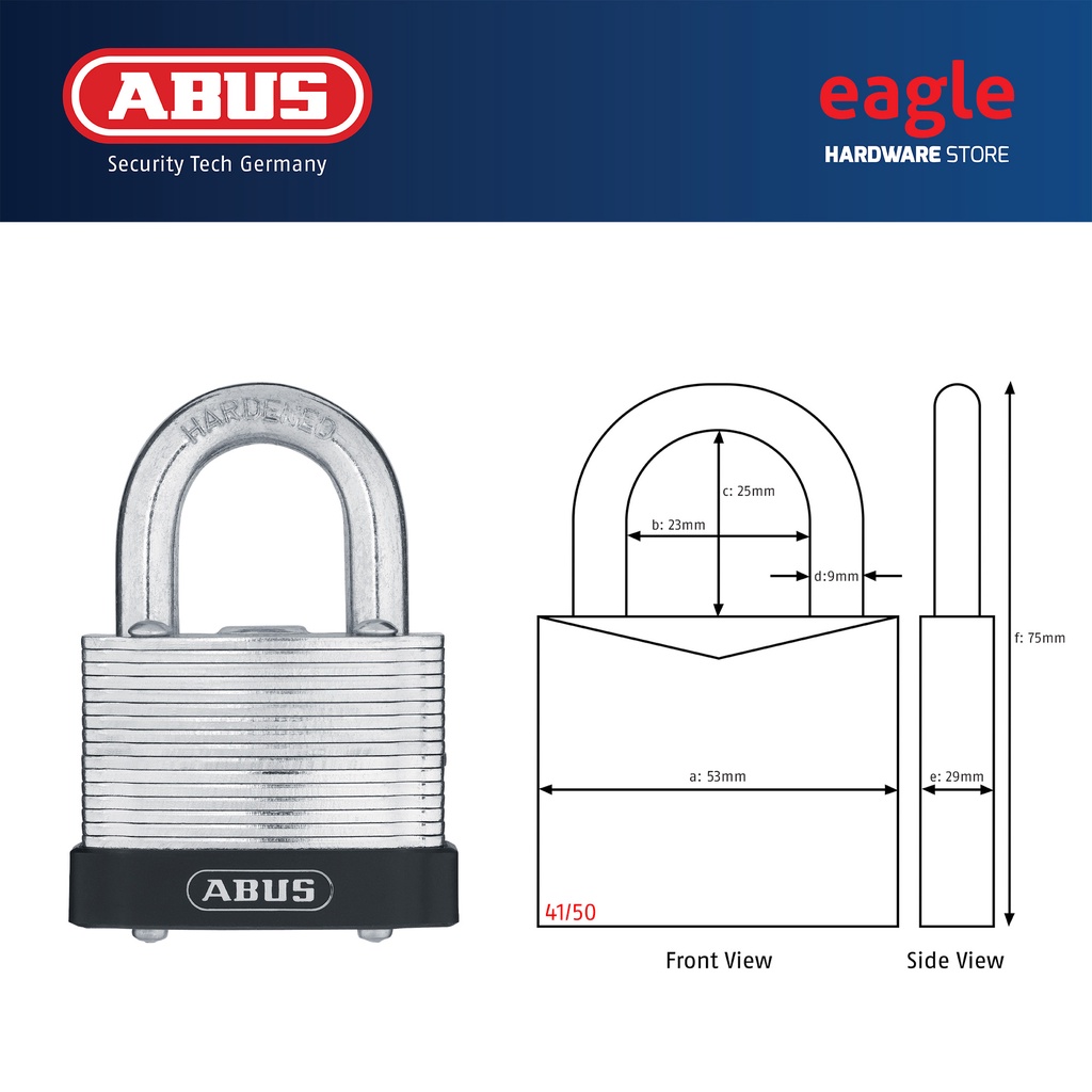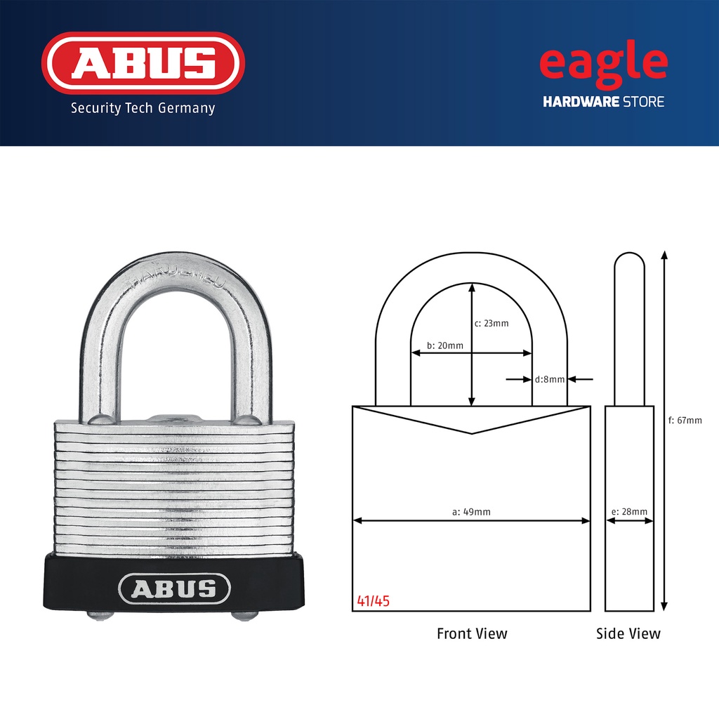 Abus 41/30, 41/40, 41/40HB50, 41/45, 41/50, 41/50HB50 Laminated Padlock. Made In Germany