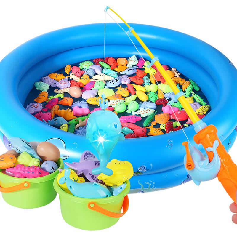 Mainan Memancing Joran Kanak-kanak Memancing Air Memancing Induksi Bercahaya Pakej Kolam Renang Ikan 3-6 Tahun Joran Bay