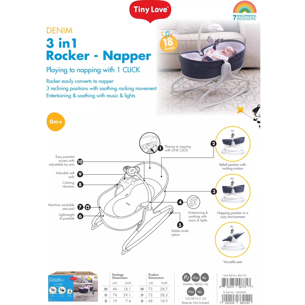 Tiny Love 3 IN 1 ROCKER NAPPER - DENIM - 1 year warranty