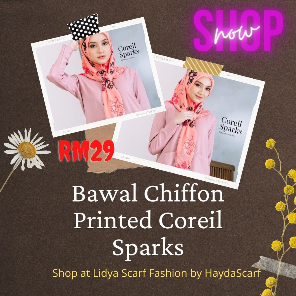 Tudung Bawal Chiffon Printed Coreil Sparks By Hayda Scarf-Deanalidya