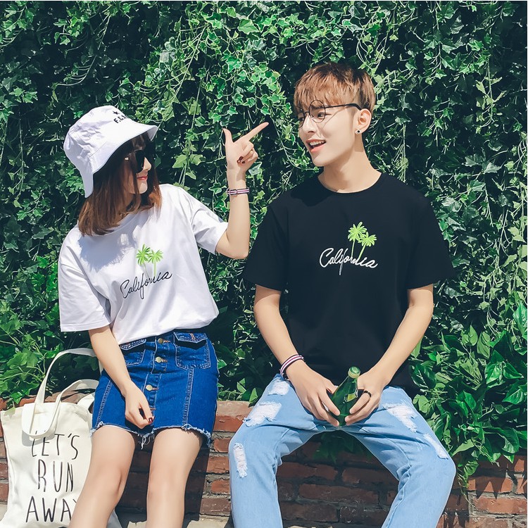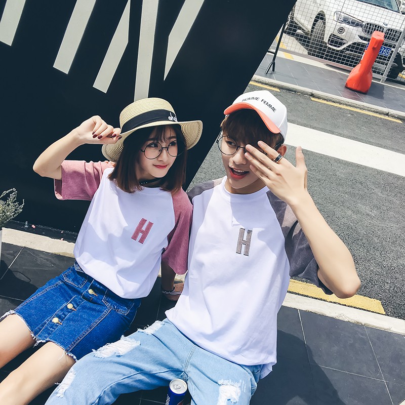 (418) 2018 stylish couple tshirt korean BF T 夏季2018情侣短袖t恤女原宿bf风宽松韩版简约学生百搭班服上衣潮
