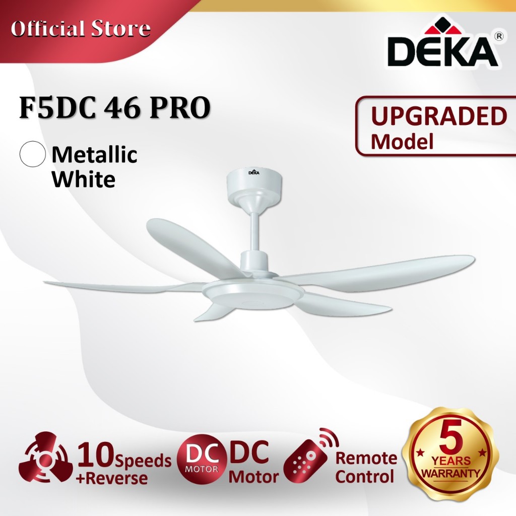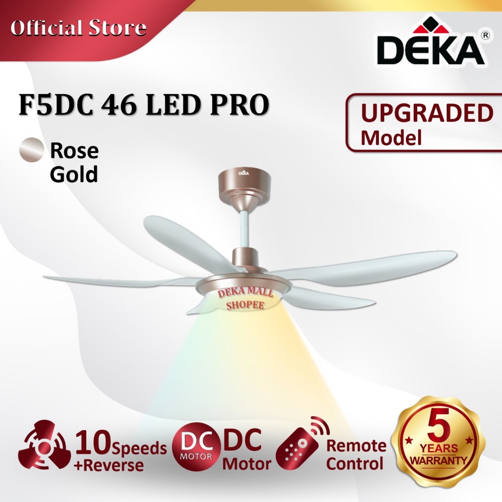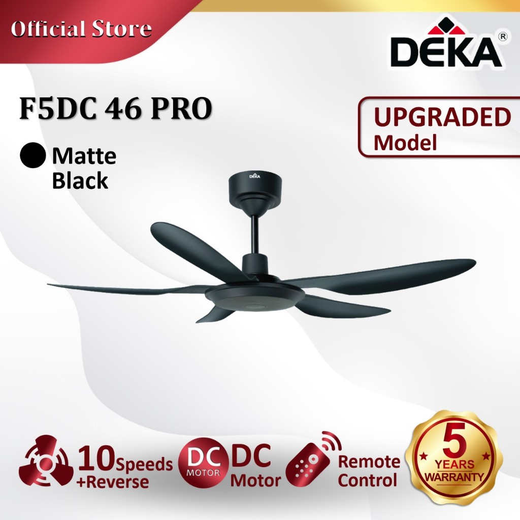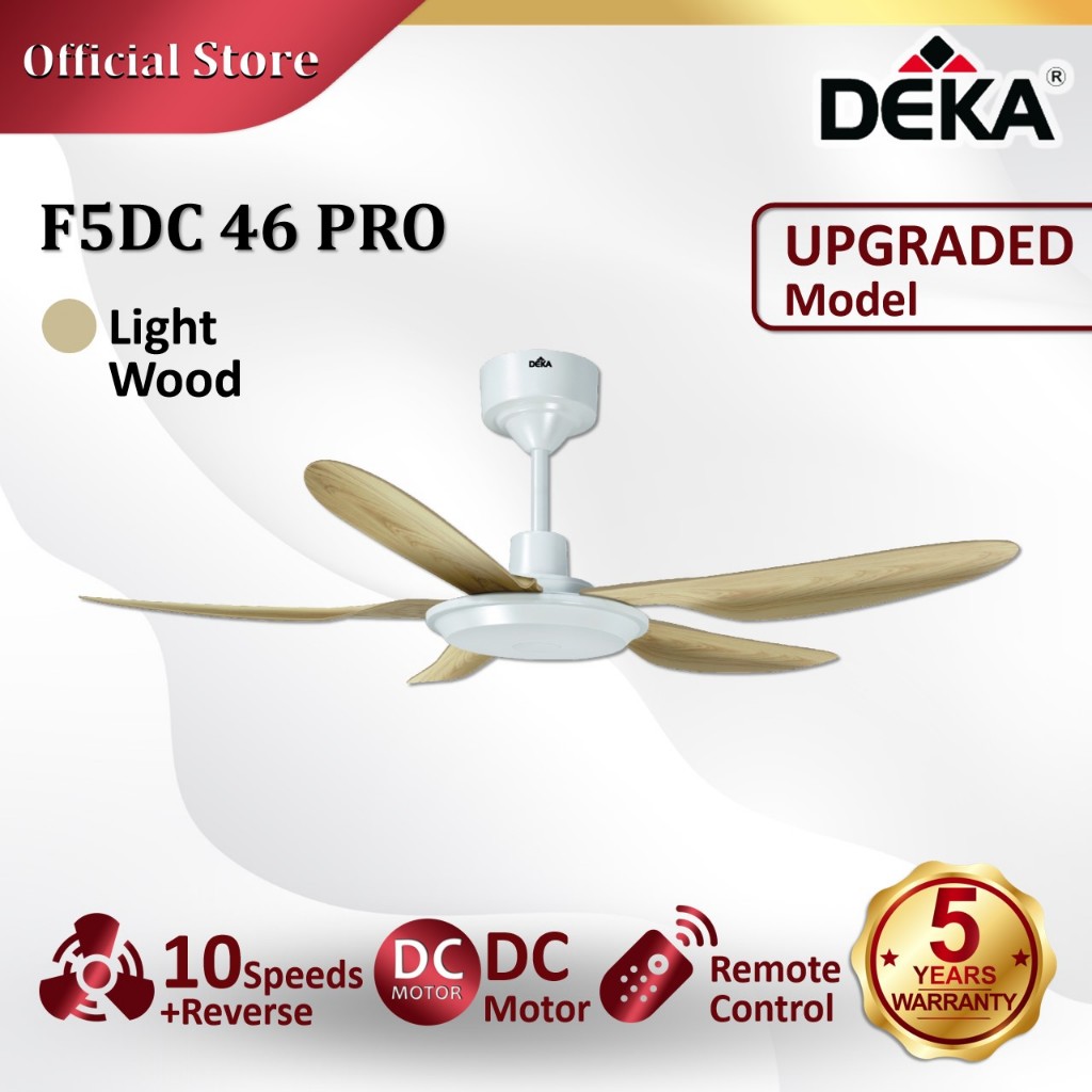 DEKA F5DC PRO 46" Series 5 Blades DC Motor 20 Speed + Reverse with Remote Control Ceiling Fan with Light Kipas Siling