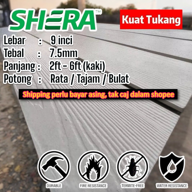 SHERA PLANK 9 INCI x 7.5MM / FACIAL BOARD / PAPAN CANTIK / PAGAR DINDING / PAPAN LELEH / CEMENT FIBRE