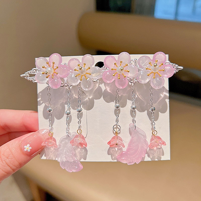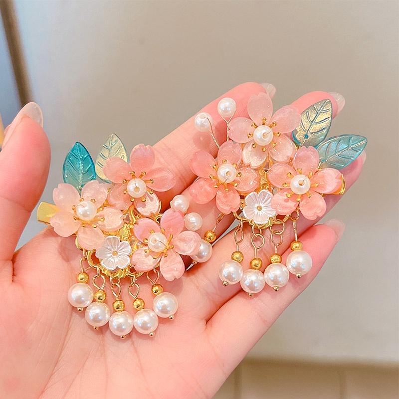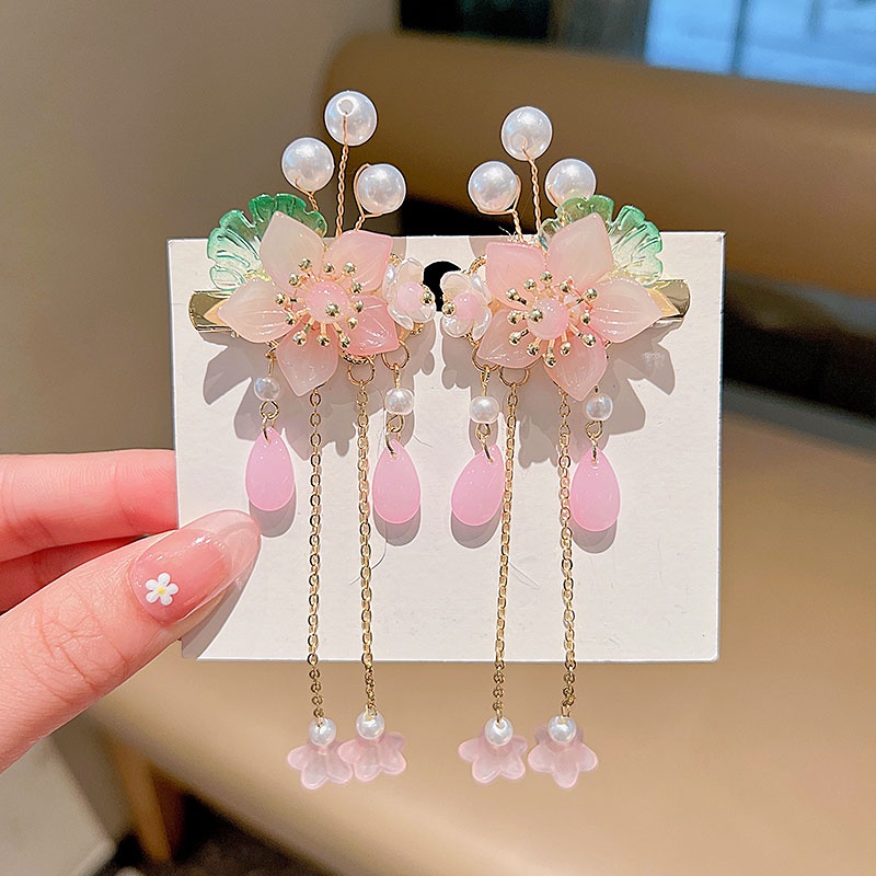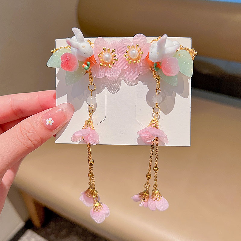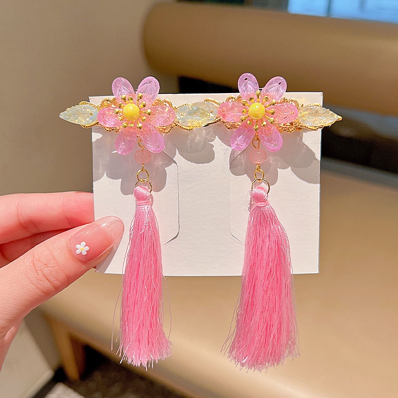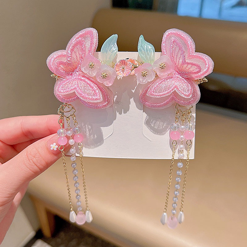 Hanfu tengkolok gadis langkah angin Cina kanak-kanak goyang rumbai jepit rambut gadis kecil kostum purba bunga dongeng s