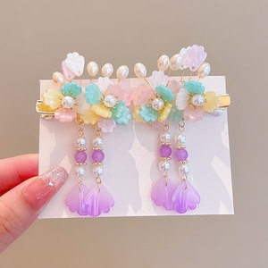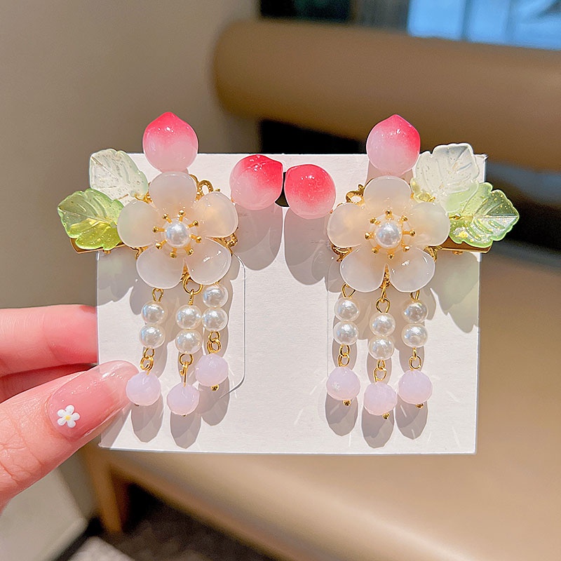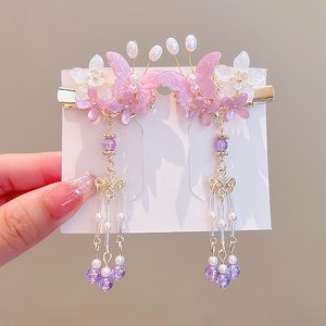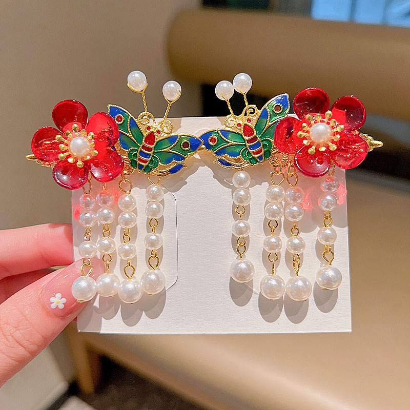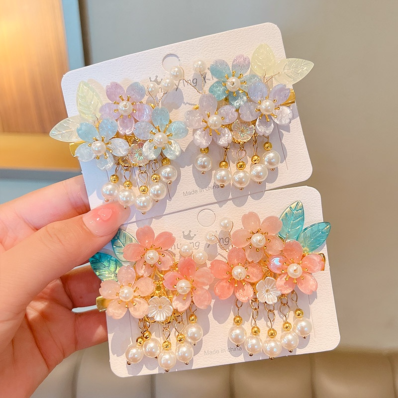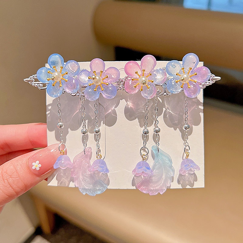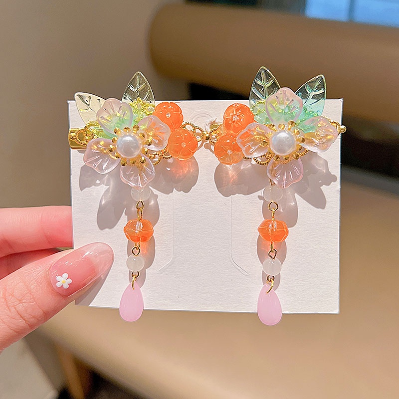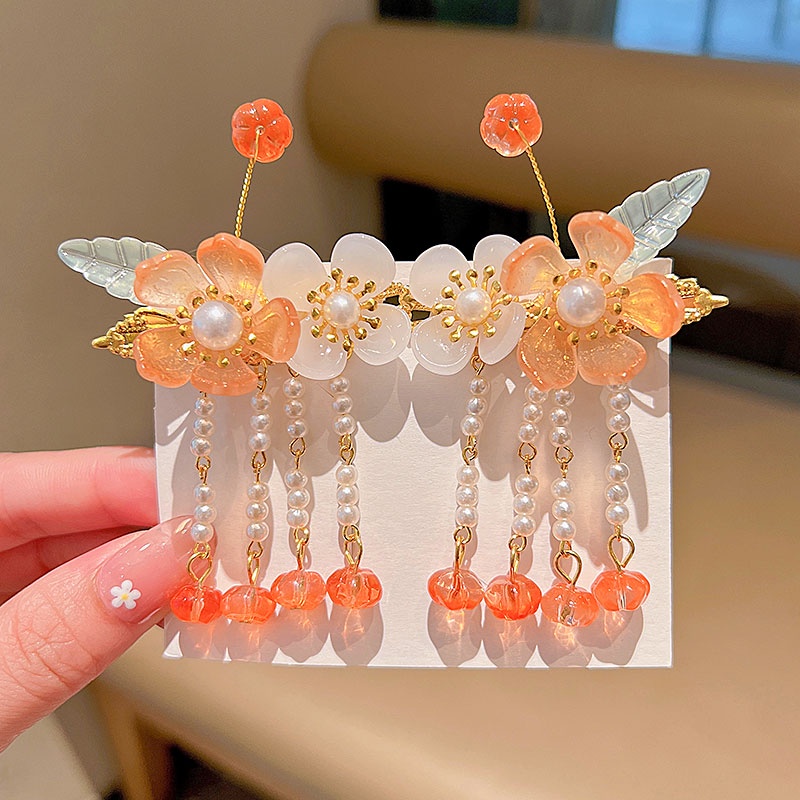 Hanfu tengkolok gadis langkah angin Cina kanak-kanak goyang rumbai jepit rambut gadis kecil kostum purba bunga dongeng s