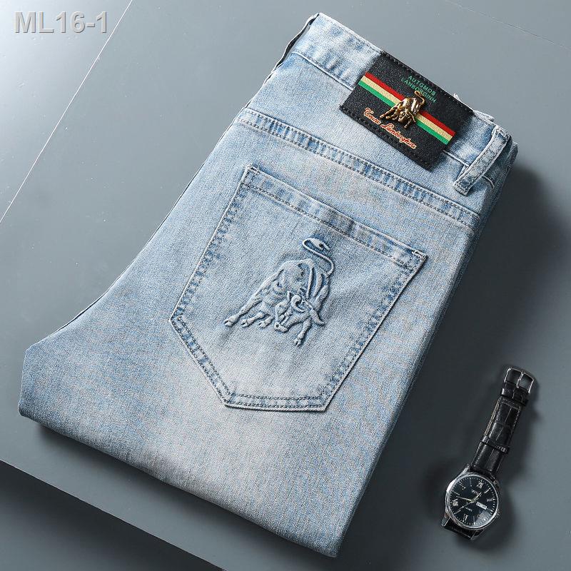 ✣LEEPANPAN jeans mewah lelaki musim luruh dan musim sejuk seluar anjal baharu lurus langsing versi Korea bagi seluar kas