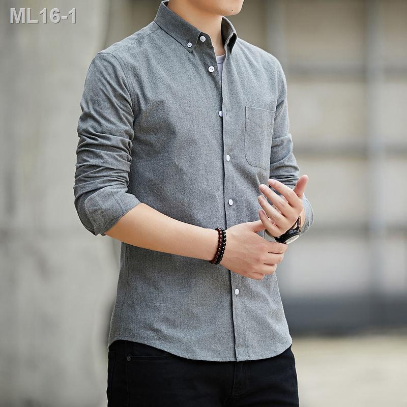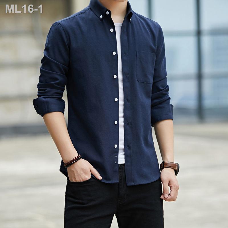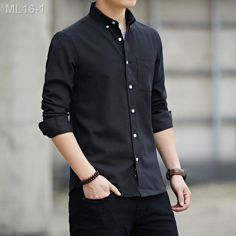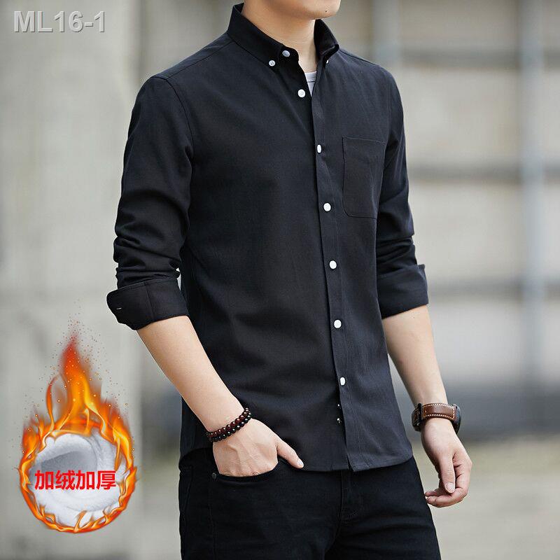 ◑◎Pakaian luar musim luruh dan musim sejuk baju lengan panjang lelaki versi Korea kasual hitam dan putih ditambah baju t