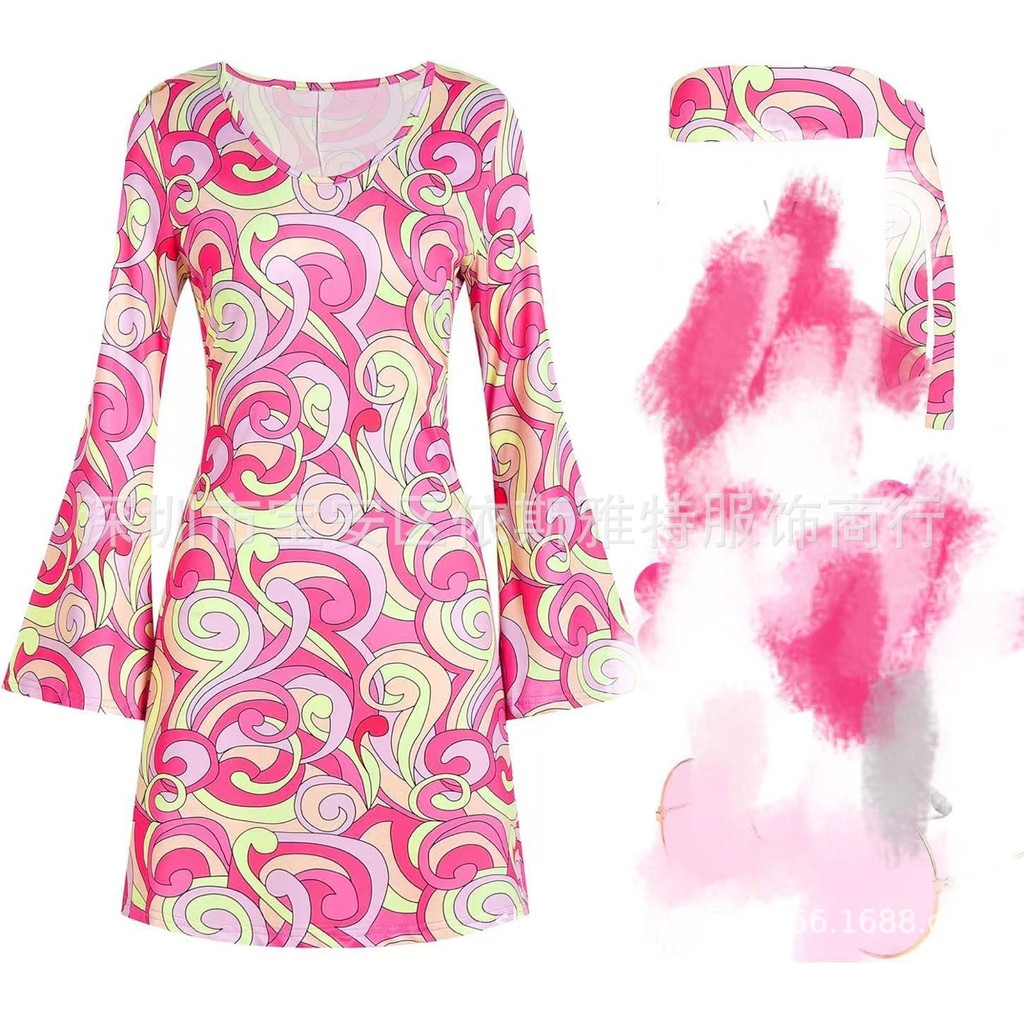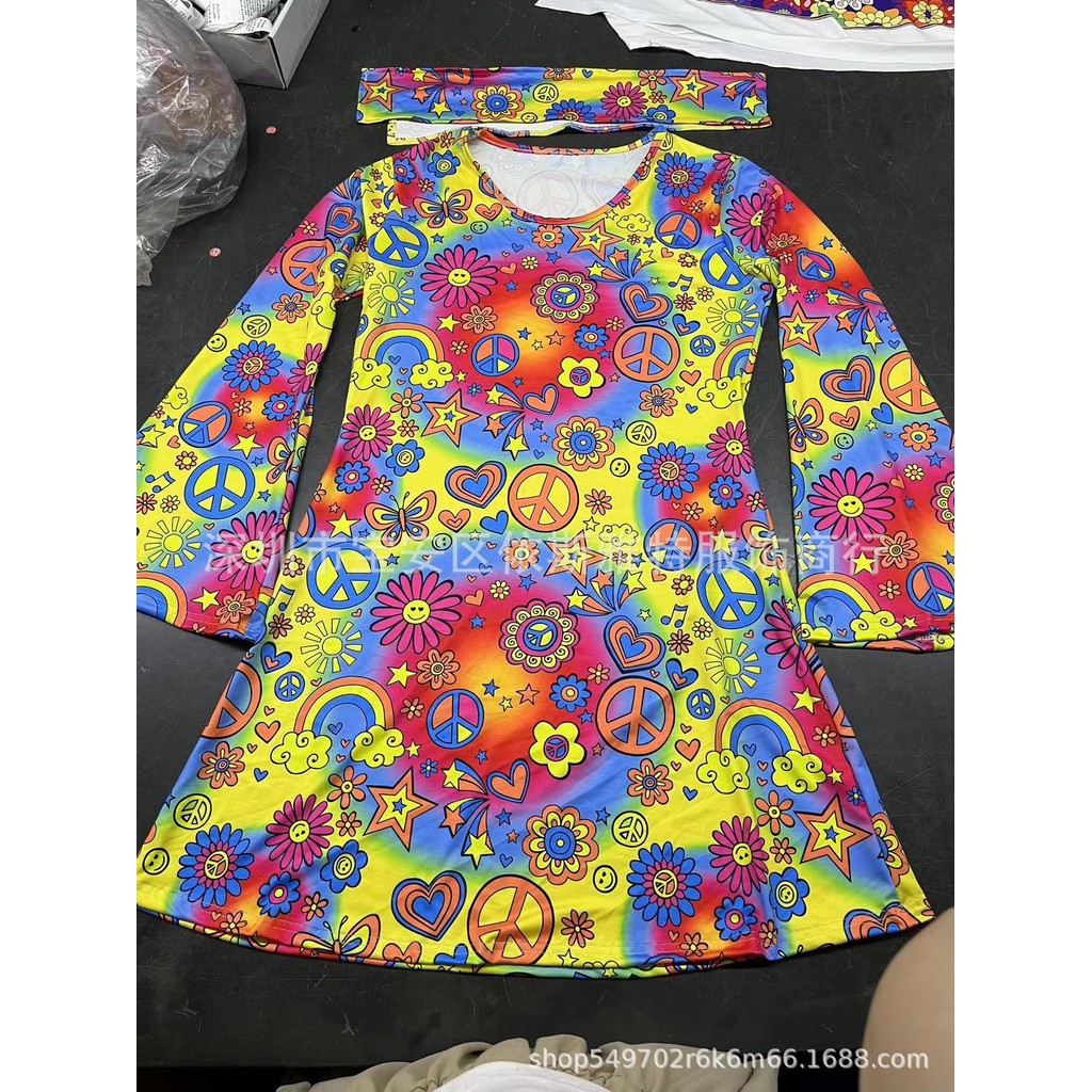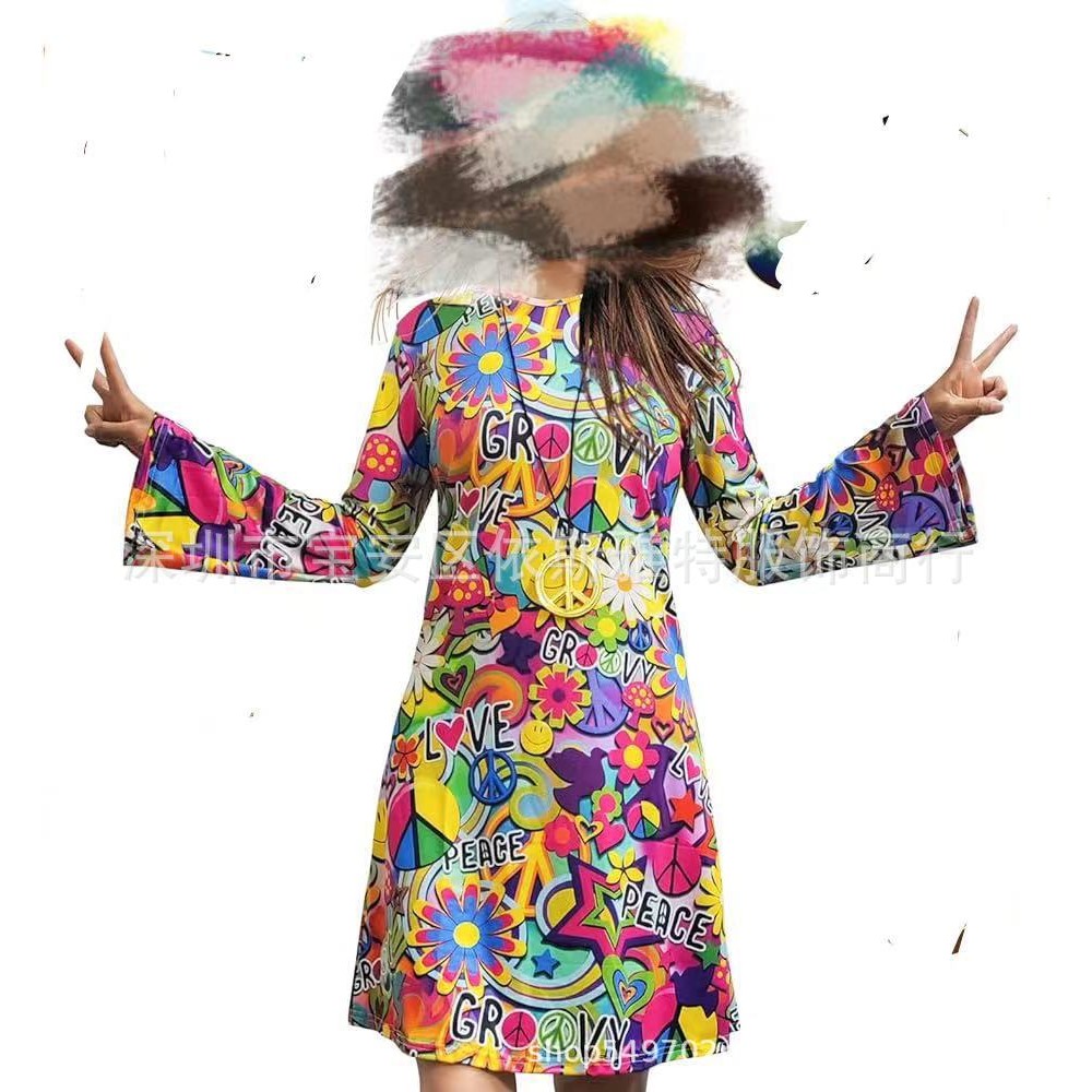 Pakaian Kostum Disko Hippie Halloween 70-an merentas sempadan Tanpa Destar