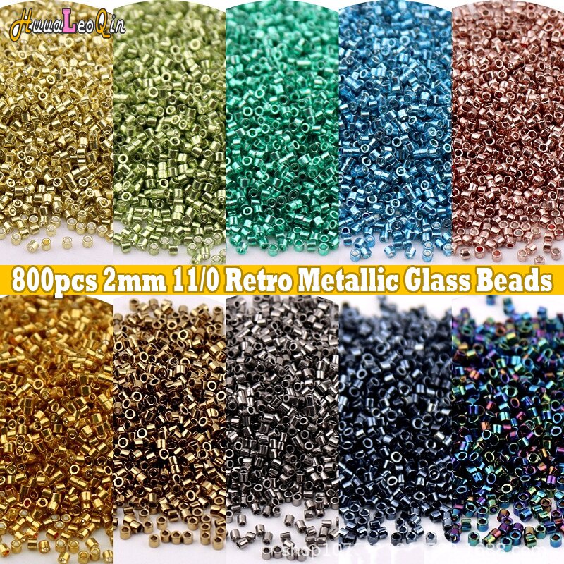 800pcs 1.6mm Metallic Miyuki Delica Glass Beads Loose Spaced Beads for Needlework Jewelry Making DIY Charms Bracelets